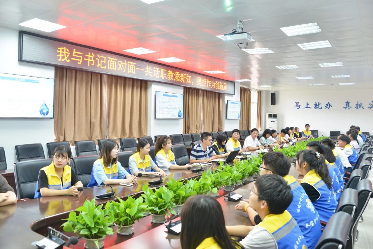 6月24日下午,2021年第一期“我与书记面对面”活动在禹兴园1~506举行,学院党委书记庄伟廉与水利科技社师生代表共30余人围绕“共话职教添新知,勇担作为创新局”主题进行了面对面的交流。团委负责人庄娟瑜,社团指导教师王世策、李桂良、许广琦等参加了交流会。水利工程系党总支书记刘玉萍主持交流会。