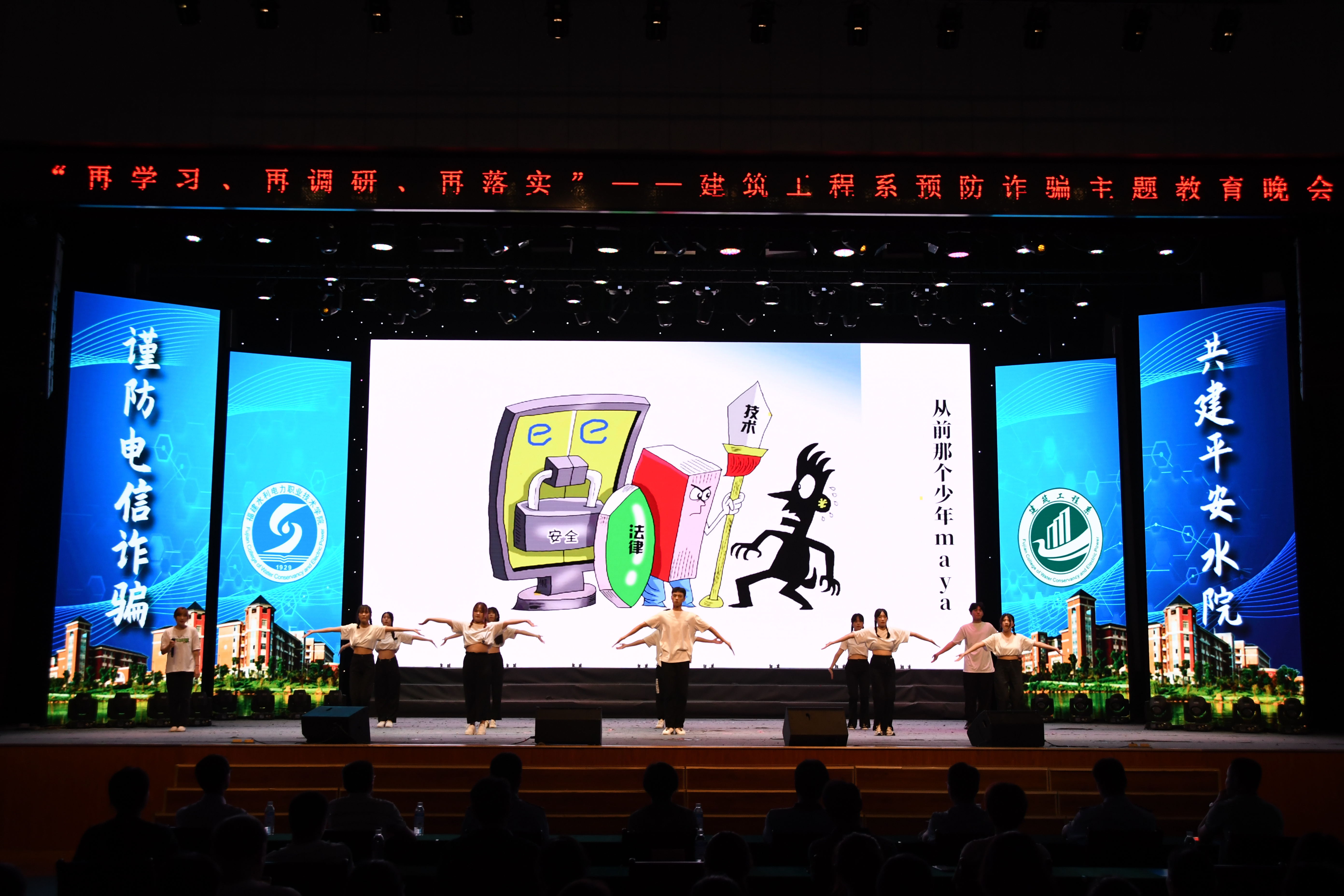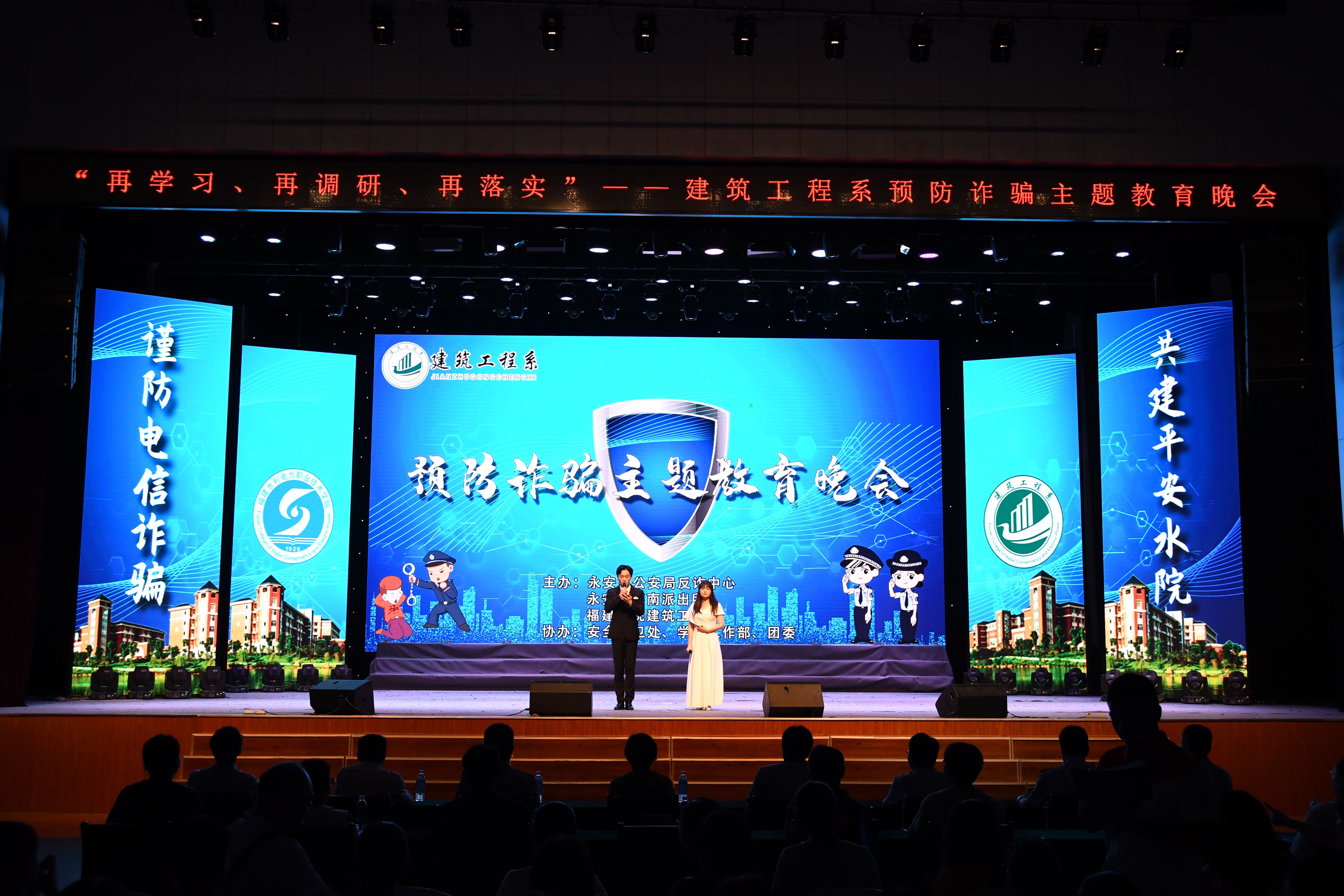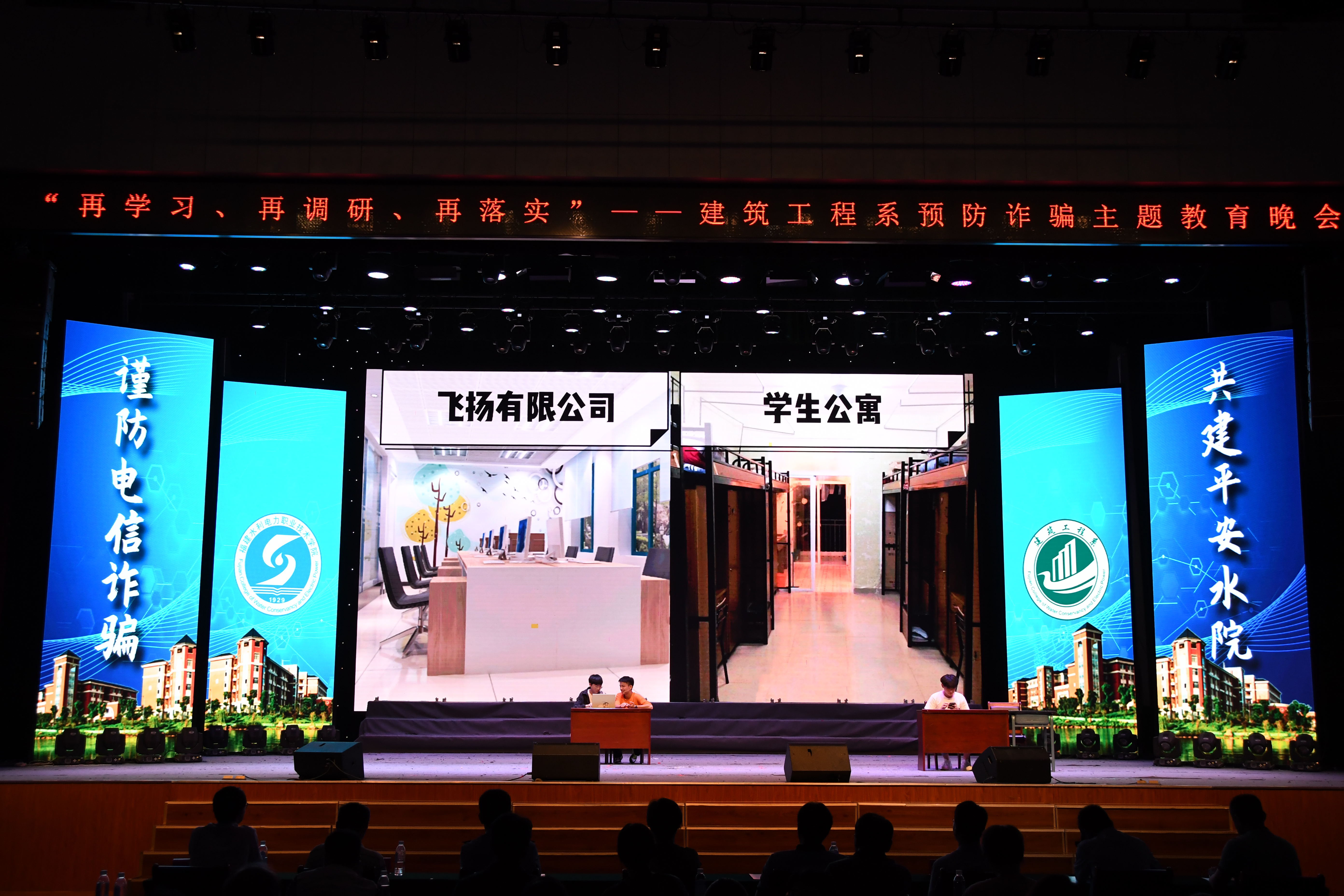 为全面贯彻落实习近平总书记对打击治理电信网络诈骗犯罪工作做出的重要指示精神,提高师生防诈骗意识,创新防诈骗教育形式,6月2日晚,建筑工程系在路港体育馆举办“谨防电信诈骗 共建平安水院”主题教育晚会。学院党委书记庄伟廉,党委副书记黄瑞梅,永安市公安局刑侦大队大队长林希宁、永安市公安局燕南派出所所长刘叶波等出席晚会,安全保卫处、学生工作部、团委负责人及建筑工程系领导班子参加。