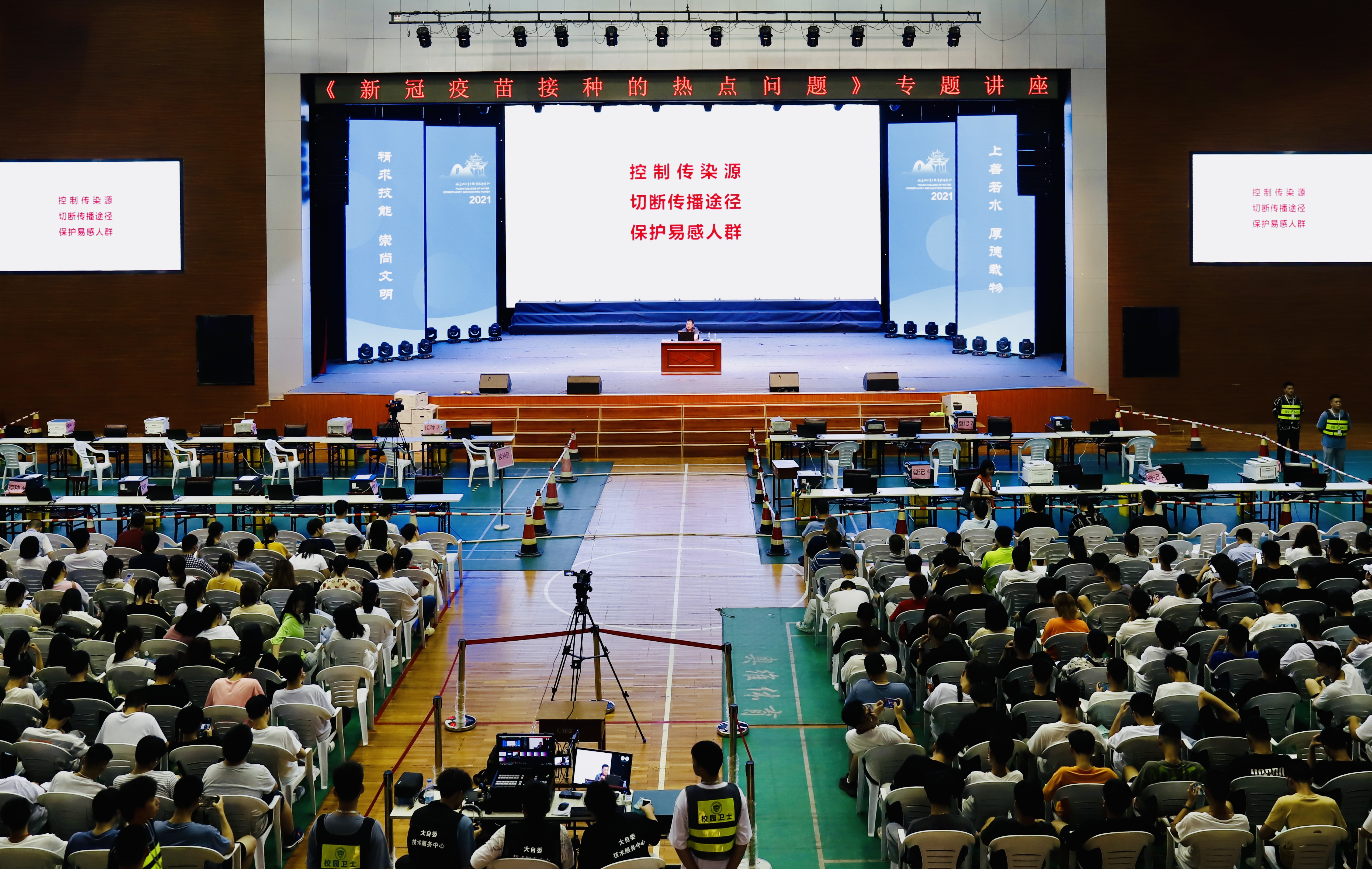 为扎实做好全院师生新冠病毒疫苗接种工作,筑牢校园防疫屏障,5月12日下午,学院特邀永安市疾控中心主任医师范光作《新冠疫苗接种的热点问题》专题讲座。讲座在路港体育馆设主会场,在综合楼小舞台及各教室设分会场,学院共4000余名师生聆听了讲座。讲座由学院副院长李建平主持。