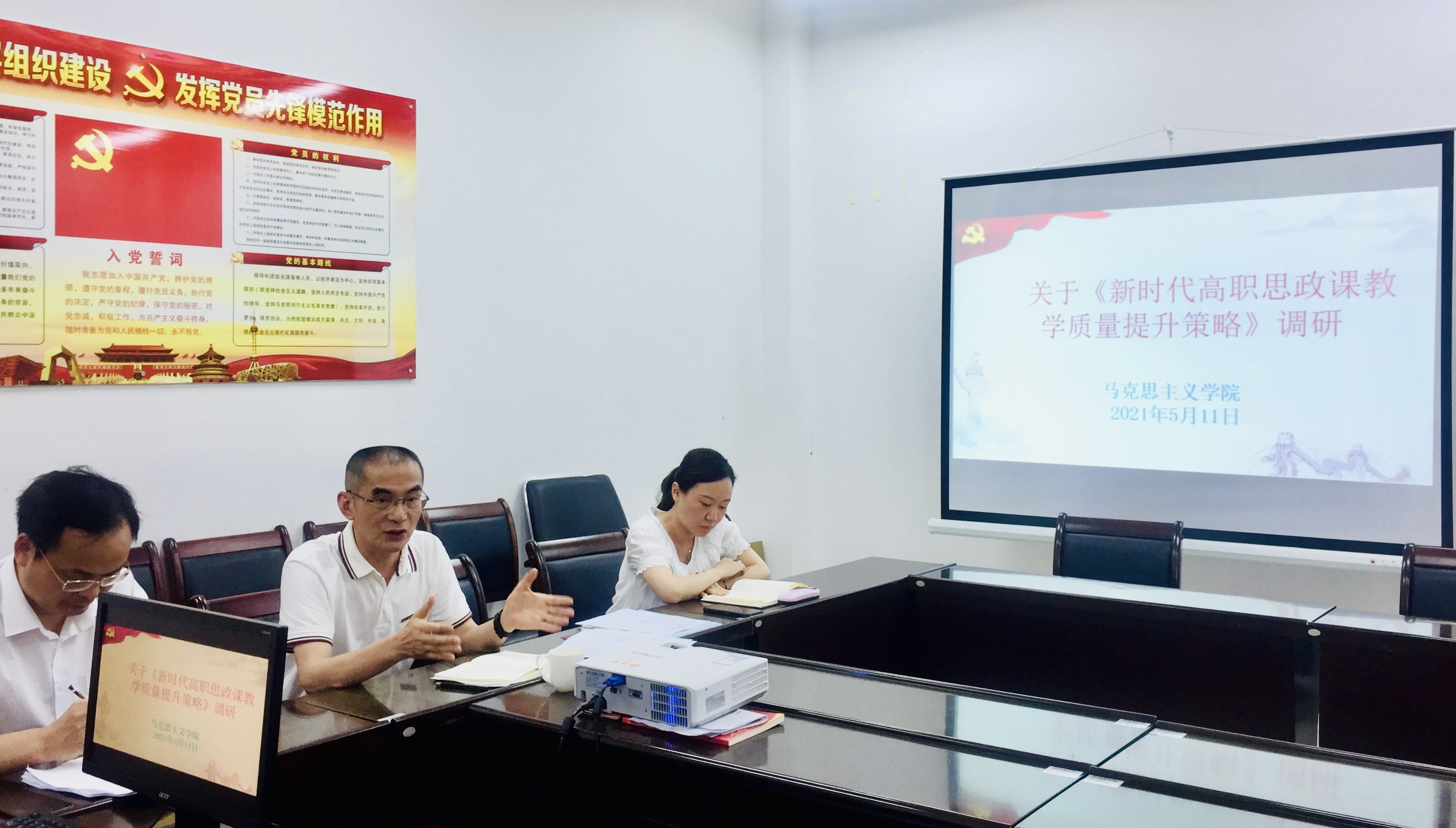 5月11日下午,学院院长杨元挺到马克思主义学院开展关于《新时代高职思政课教学质量提升策略》的调研座谈,听取马克思主义学院工作汇报,并就教育教学质量作指导。马克思主义学院教师参加了座谈。