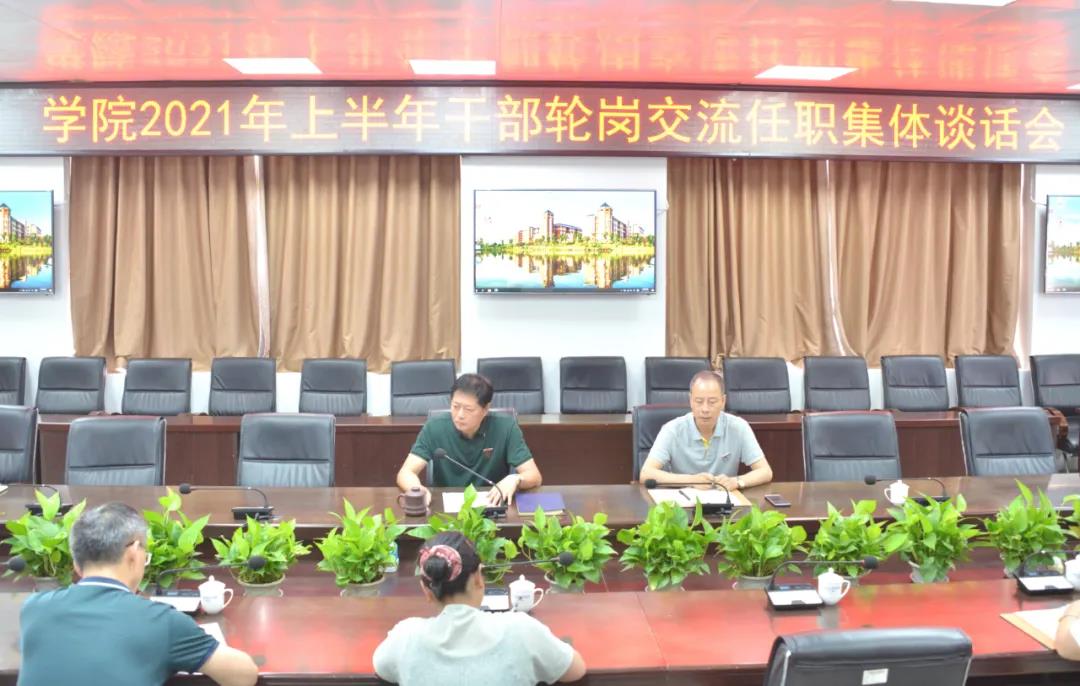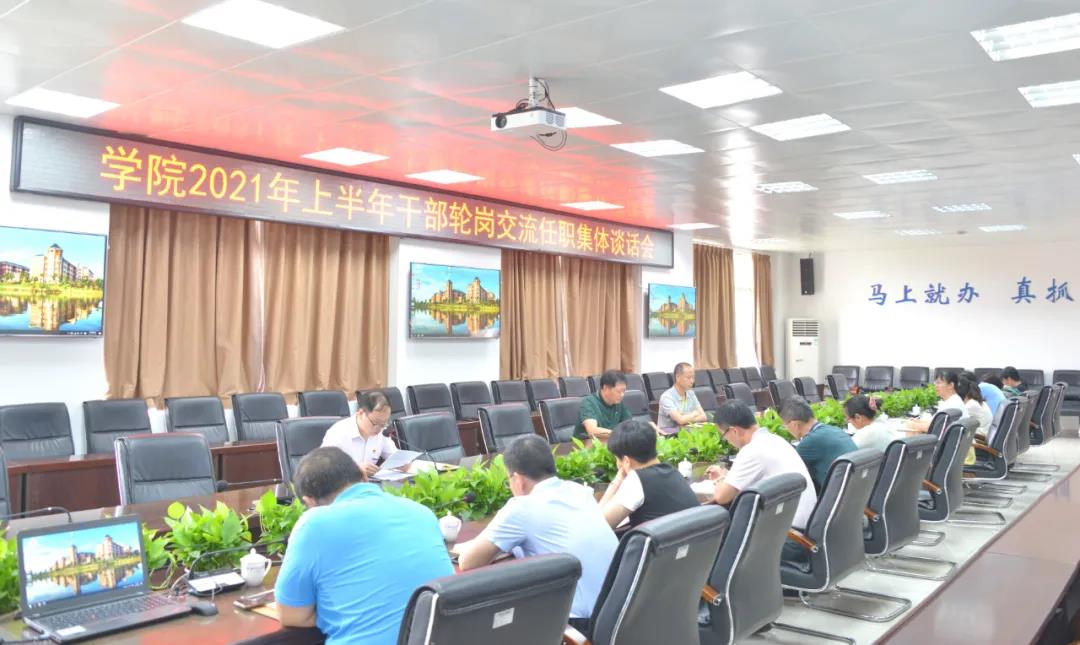5月28日上午,学院2021年上半年干部轮岗交流任职集体谈话会在禹兴园第二会议室召开。学院党委书记庄伟廉、纪委书记邱祥光出席会议并讲话,11名轮岗交流处级、科级干部参加会议。会议由党委书记庄伟廉主持。