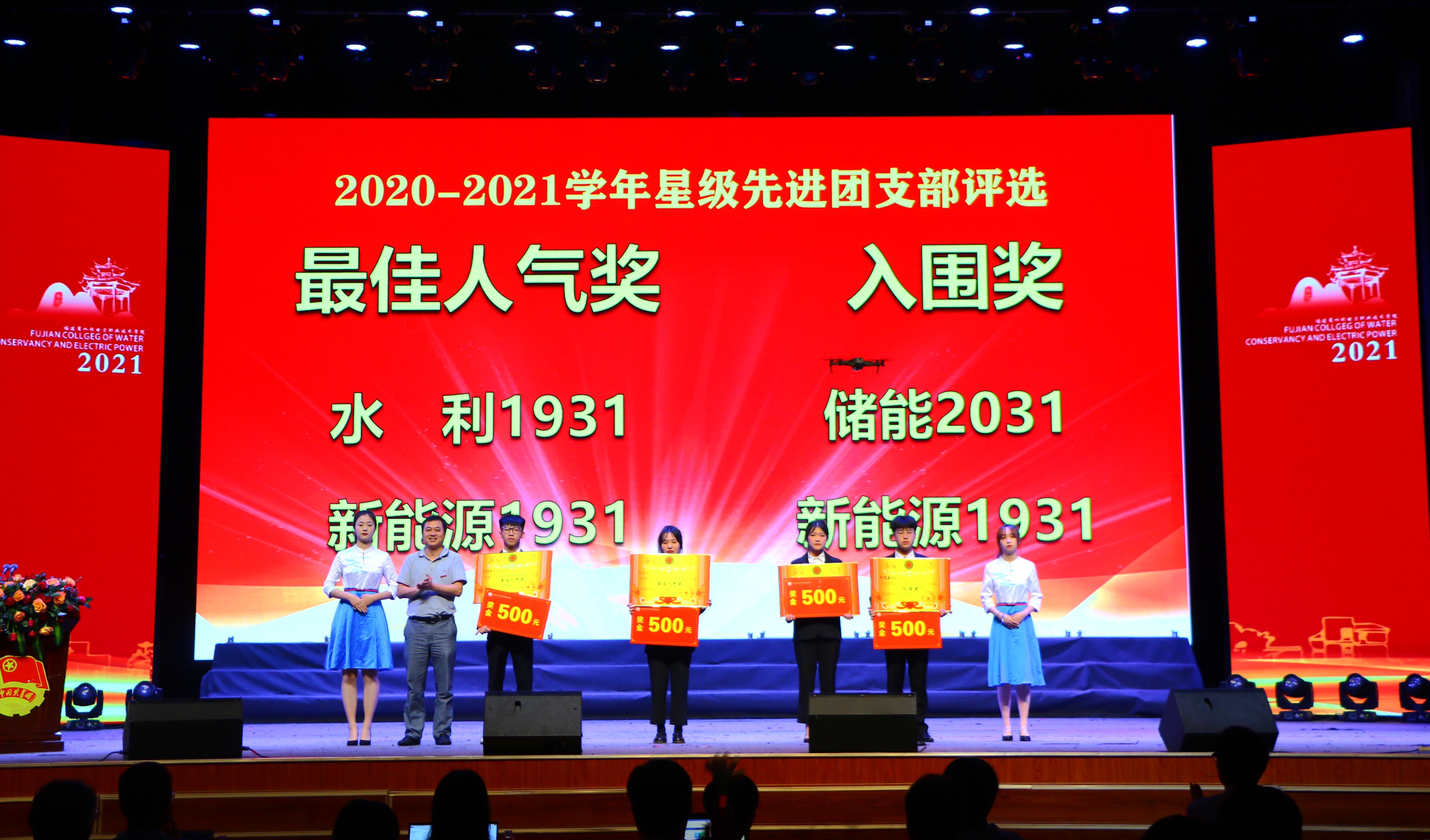 大会首先表彰了2020年度共青团工作“星级先进团支部”“十佳团干”“十佳团员”“优秀团干”和“优秀团员”,并进行了2020-2021学年星级团支部创建评选活动。此次活动得到了全院五系一部近200个团支部的积极响应,经过预赛、复赛的激烈角逐,12个团支部脱颖而出。最终来自水利工程系水利1931“水滴型”团支部摘取“五星级”团支部桂冠,并获得单项奖“最佳人气奖”。