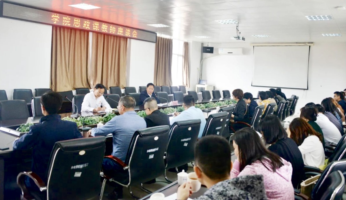 4月20日上午,在禹兴园1-314会议室召开思政课教师座谈会。学院党委书记庄伟廉出席会议并讲话。会议由马克思主义学院院长张盛文主持,二十六名思政教师代表参加座谈。