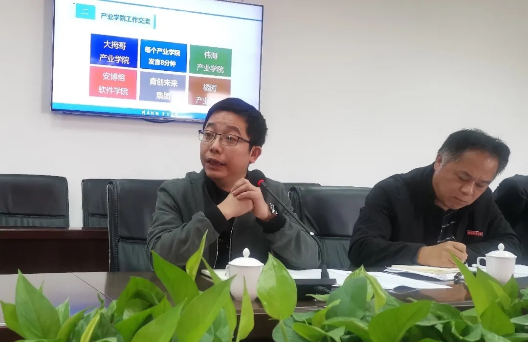 会上,包晓晖传达了国务院《国家职业教育改革实施方案》和福建省《关于深化产教融合推动职业教育高质量发展若干措施》文件精神。软件学院院长陈黎黎、大拇哥产业学院院长苏红兵、伟海产业学院院长张磊、橘园产业学院副院长赵宁娟、青创未来集团合作项目负责人黄晓燕等校企合作办学机构负责人围绕项目建设发展、产教融合模式改革、校企共建共享教学资源等纷纷发言。各专业系主任分别介绍产教融合的成效与经验,并就下一阶段尤其是“十四五”期间的工作思路进行深入阐析。