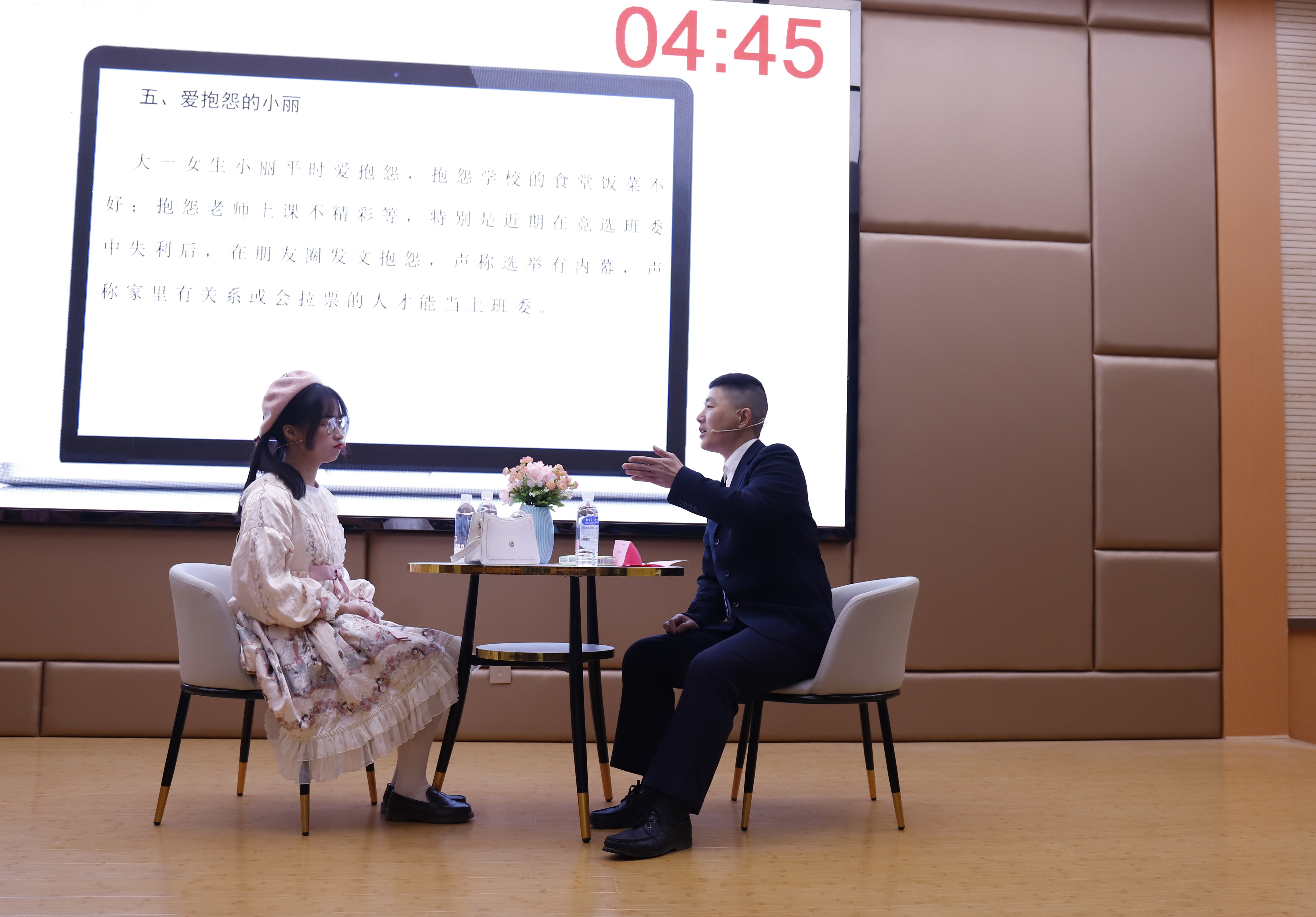 谈心谈话环节以情景再现的方式,考察辅导员对相关政策、学生特征、学生成长成才规律的了解把握及对学生的教育引导能力。本届赛事设置了关于入党评优、网络舆情、安全纪律、就业创业、学习成长等方面的问题,辅导员们或动之以情、晓之以理,或条分缕析、循循善诱,或温情安抚、问症把脉,机智的处理和精彩的表现,展现了辅导员的个人素养、知识储备和职业能力,赢得了阵阵掌声。