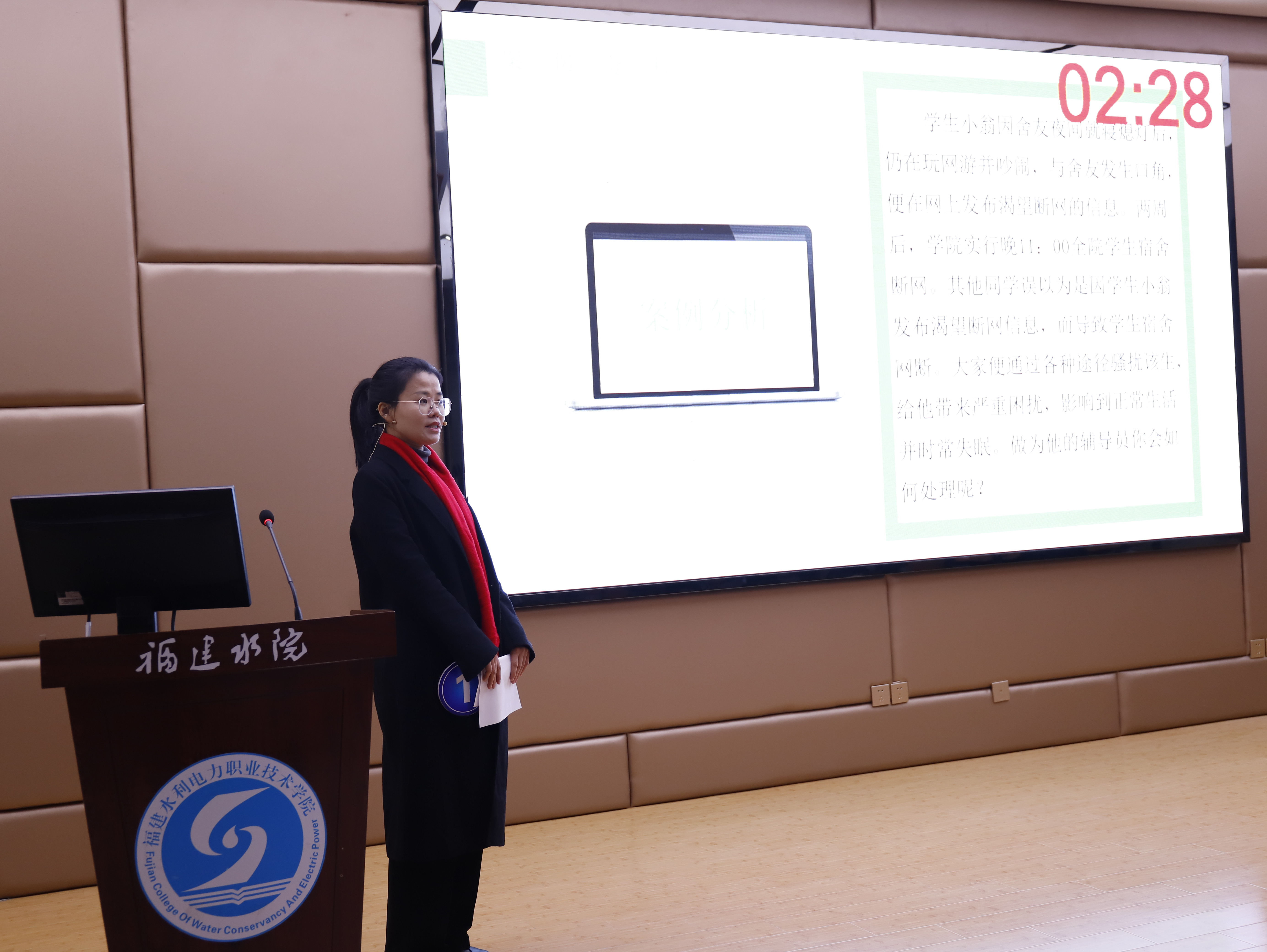 案例分析环节重点考察辅导员分析、研判、解决问题的能力。各参赛辅导员立足于工作实际,围绕案例中的问题本质、解决思路、实施办法及相关启示进行了详实的阐述。比赛现场,参赛辅导员们条理清晰,侃侃而谈,充分展示了理论功底和工作能力。
