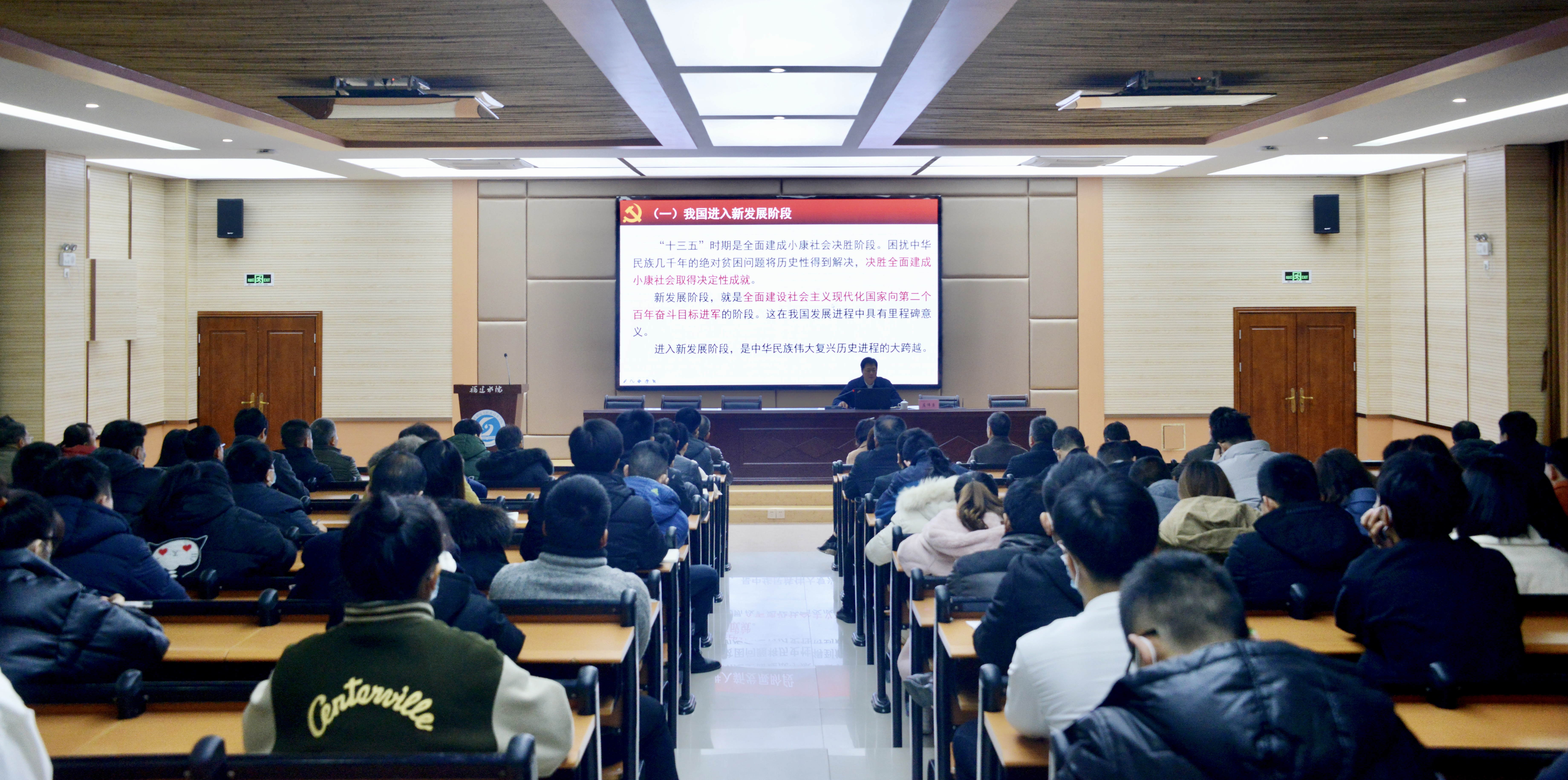 庄伟廉以《乘风破浪 砥砺新征程》为题,从新阶段与新目标、新理念与新部署、新变化与新格局三个方面,系统解读了党的十九届五中全会精神,深刻阐释了习近平总书记在全会上提出的一系列新思想新观点新论断新要求,对实现“十四五”规划和2035年远景目标进行了深入浅出、精辟的讲解。