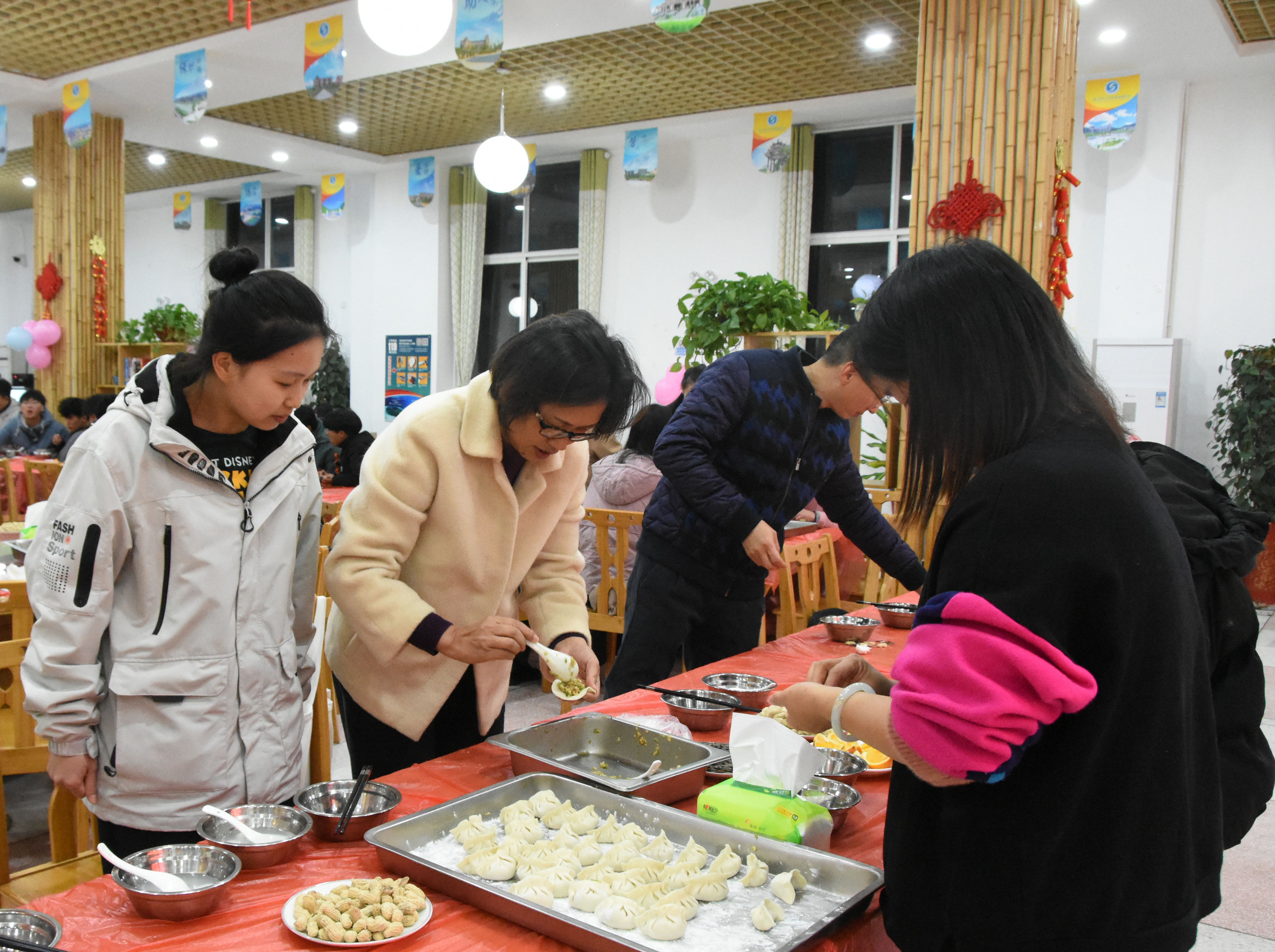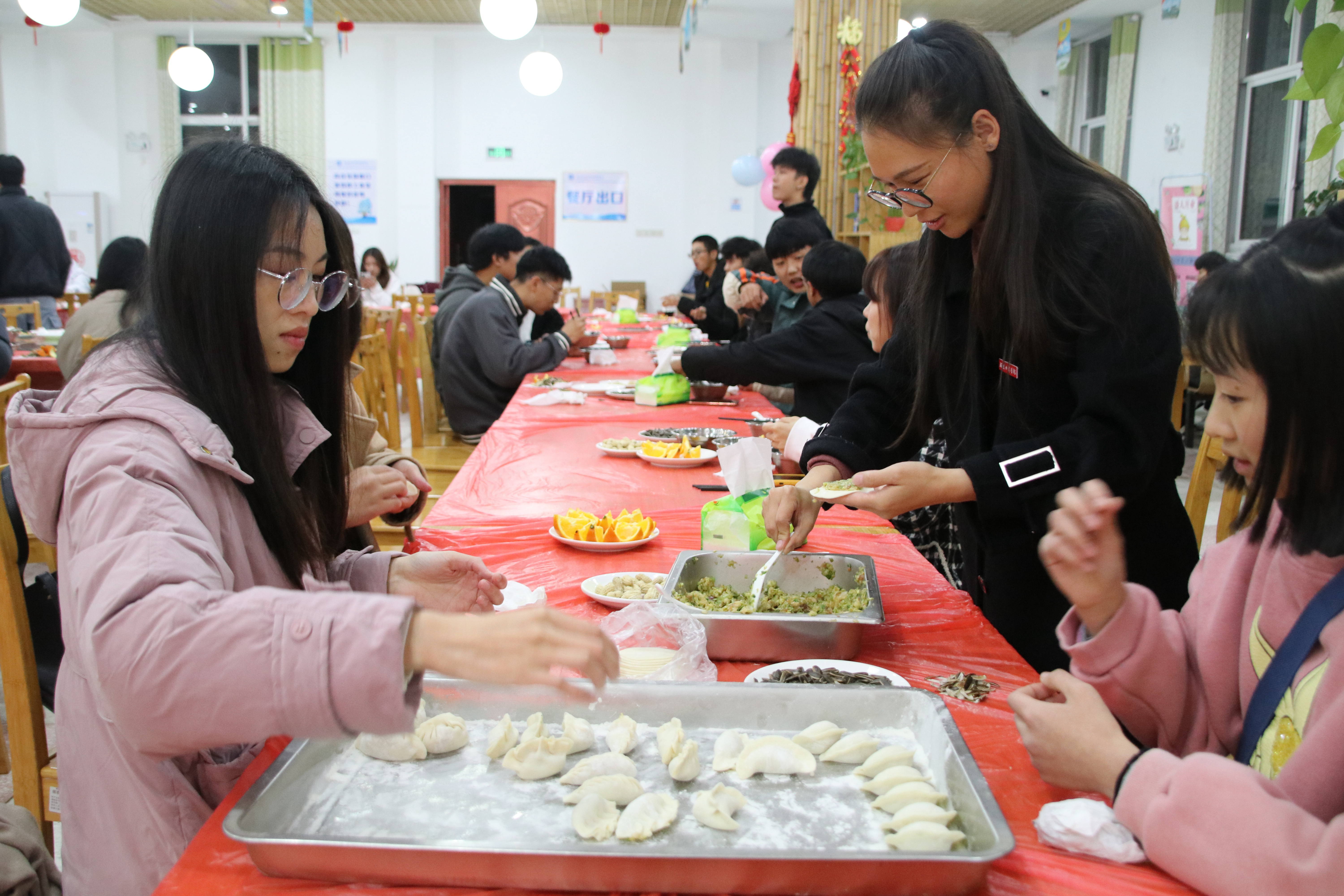 活动前,黄瑞梅向全体师生表达了殷切的期望和节日的祝福。随后活动在欢乐的歌鼓声中拉开了序幕。活动伊始,同学们便热情高涨,有的与老师围坐一起包饺子,有的到后厨帮忙煮汤圆。老师们主动与同学们进行亲切交流和互动,大家分工协作,井然有序,同享冬日温情,共迎冬至到来,营造出一片其乐融融的气氛。