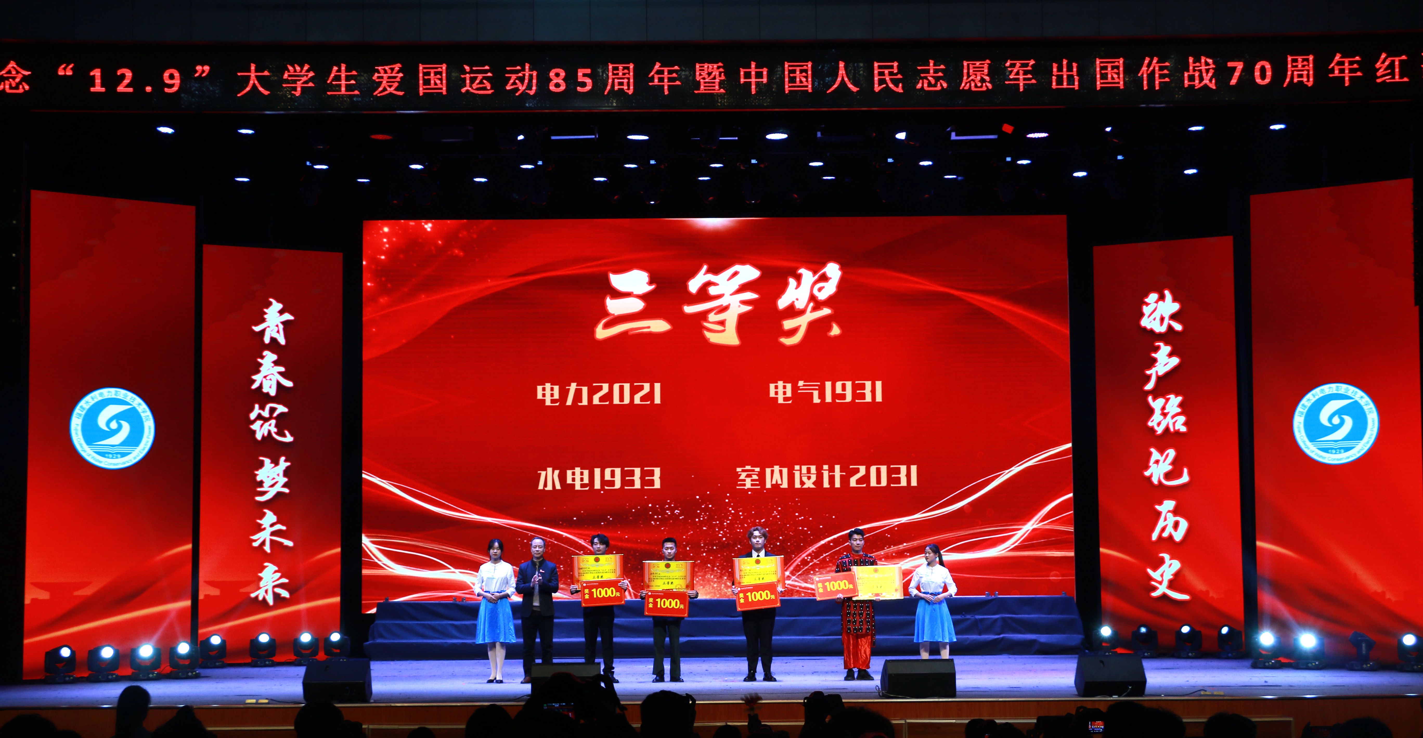 歌声铭记历史,青春筑梦未来。12月9日晚,学院纪念“一二·九”大学生爱国运动85周年暨中国人民志愿军抗美援朝出国作战70周年圆满落幕。学院党委书记庄伟廉、院长杨元挺,纪委书记邱祥光,副院长池长全、杨武盖,相关部门负责人,相关老师及2000余名学生代表欢聚一堂,聆听水院学子用歌声唱响时代的主旋律,表达对祖国的无限热爱。