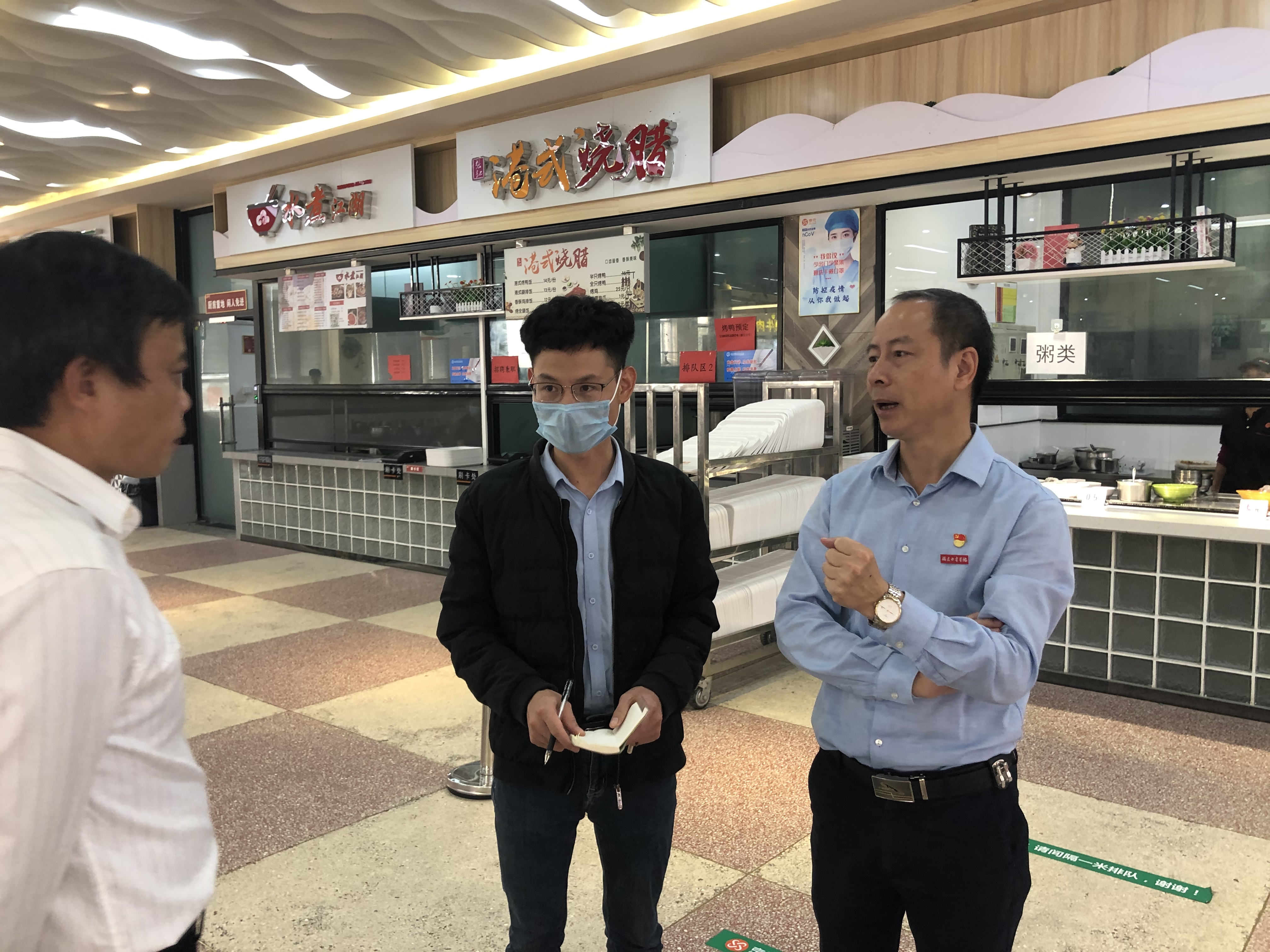 会后,邱祥光、李建平在后勤处有关同志的陪同下,检查各学生食堂、超市。