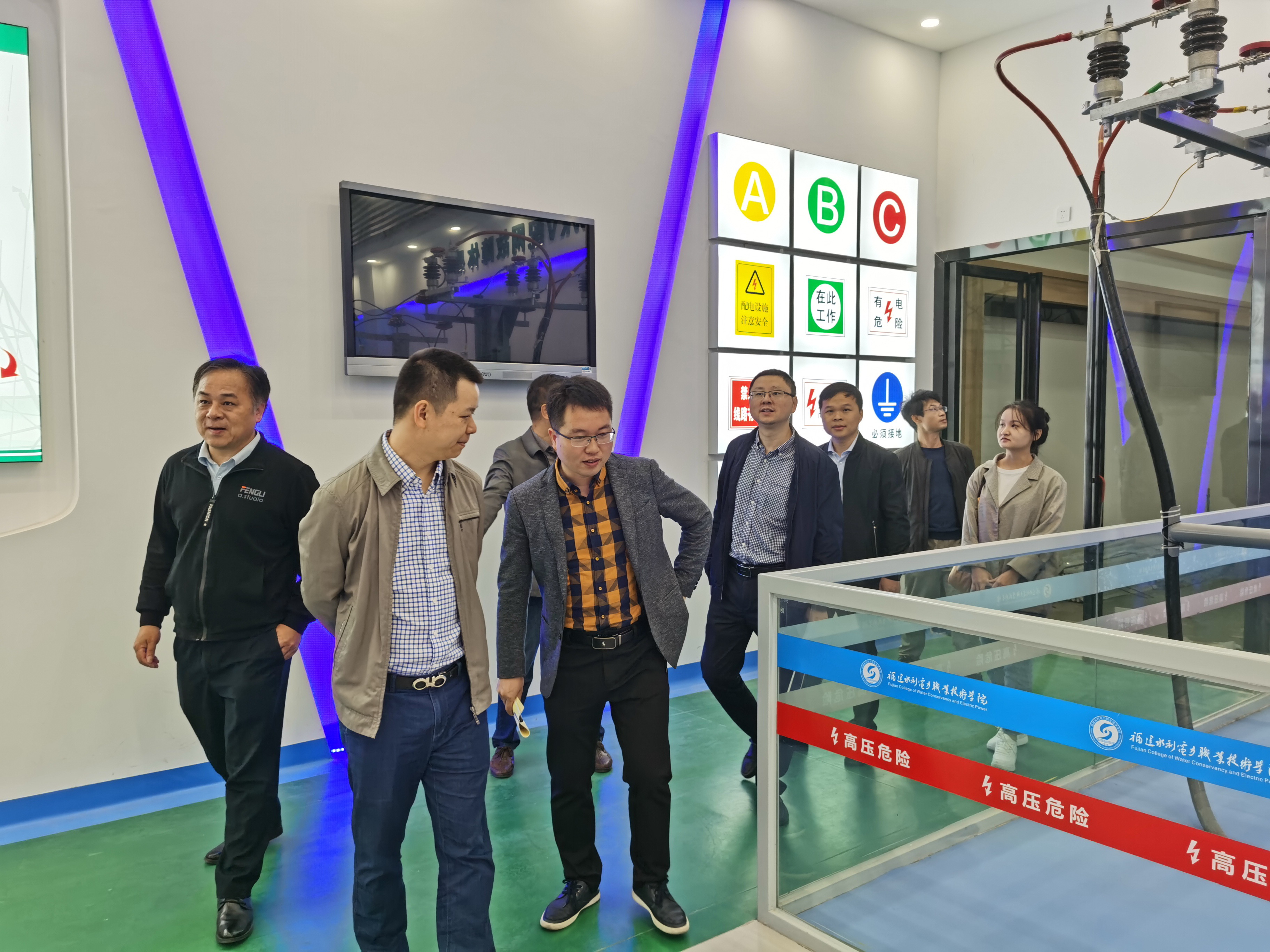 调研期间一行人还参观了电力实训基地、建筑工程实训管、电力安全体验中心和校史馆等处。