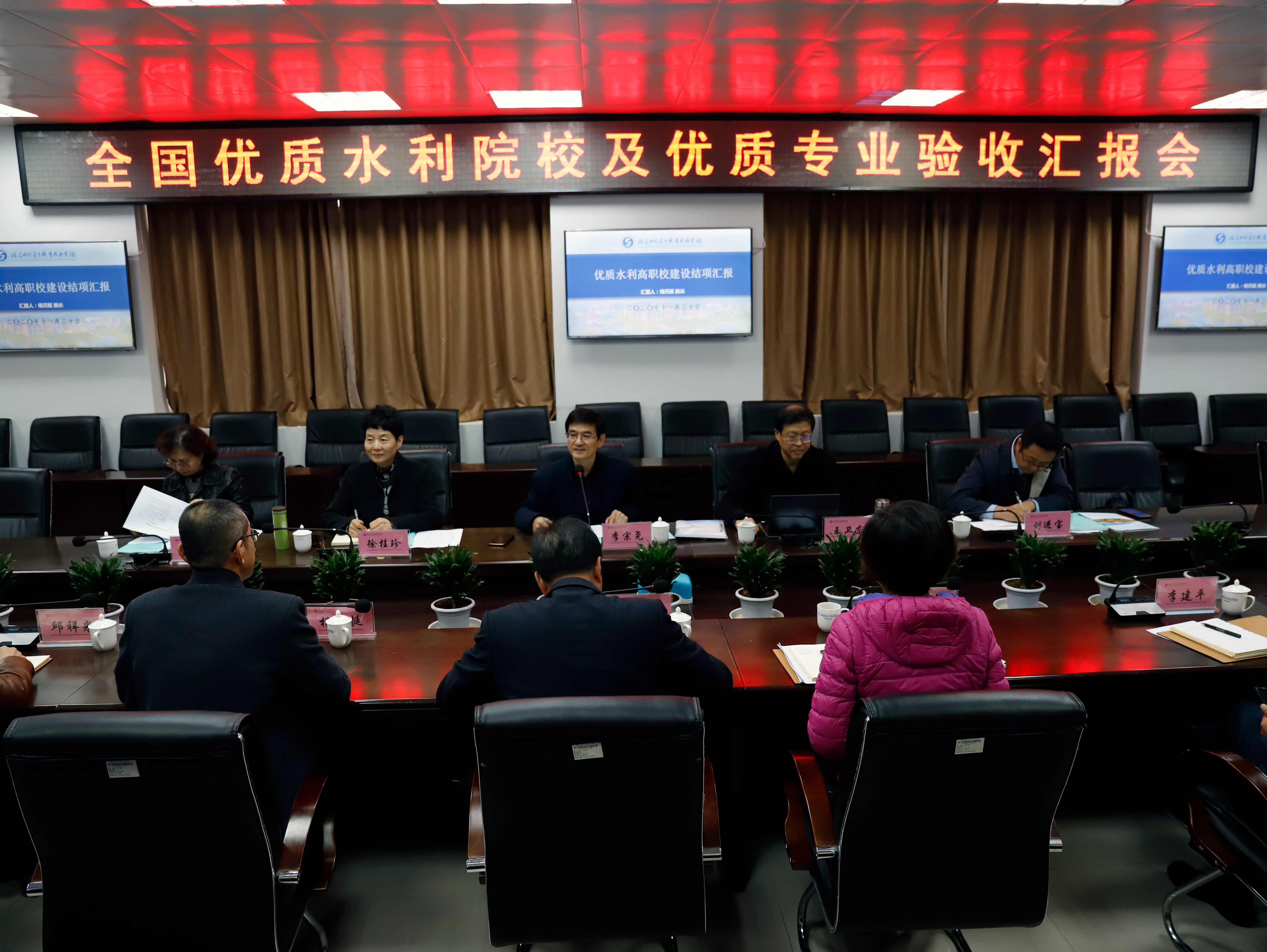 汇报会上,院长杨元挺从整体建设情况、分项任务建设情况及支持保障三大方面展开说明,重点介绍了我院在体制机制创新、优质特色专业集群、教学团队、技术技能积累与社会服务、信息化建设与应用、国际交流合作、质量管理与保证体系、特色校园文化以及特色创新项目等九个方面的建设成果。水利工程系主任张美新从优质水利专业的建设思路、做法、成效及改善等方面汇报了水电站动力设备专业建设情况。