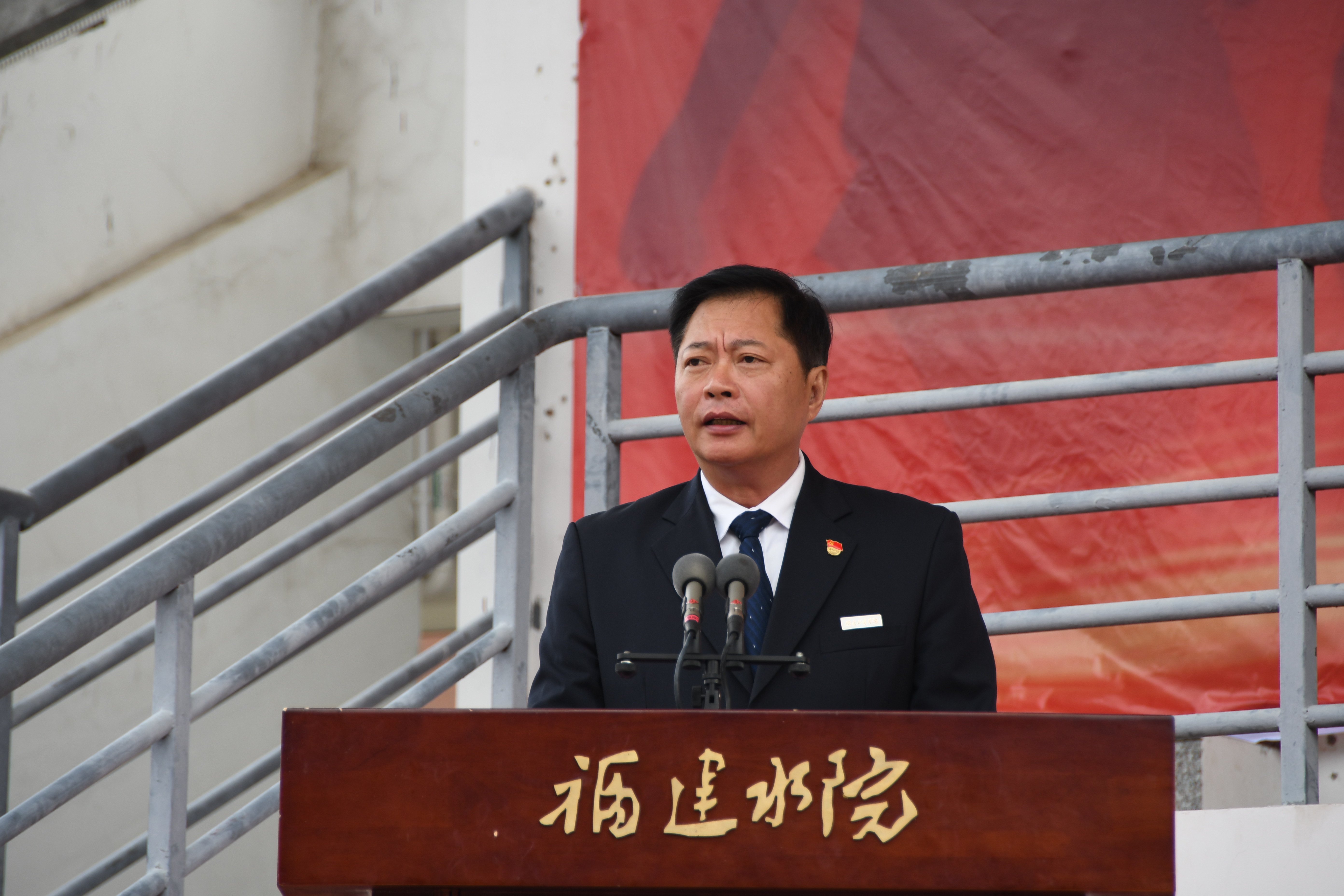 庄伟廉代表学院党政班子和全体师生向承担此次军训任务的部队官兵们表示衷心的感谢和崇高的敬意。同时,他以《以身“训”心,“从心”出发》为主题,用孩子们的语言对参训学生提出三点希望:一是希望同学们“被教官圈粉”,崇拜教官的作风、技能与精神,绝对服从命令听指挥;二是希望同学们“造公社厂牌”,凝聚集体的力量,团结一心,打造个性品牌,亮出特色旗帜,走得好,叫得响;三是希望同学们“跟自己死磕”,拿出点自信、勇气和毅力,改变以往的不良习惯,整出全新的自我。他还要求,同学们要通过身体的磨炼来磨砺心志,带着这份心志出发,融入未来的学习、生活与工作,这才是此次军训中最大的收获。一代人有一代人的长征,一代水院人有一代水院人的担当,美好的未来从水院起步,精彩的未来从军训开始!
