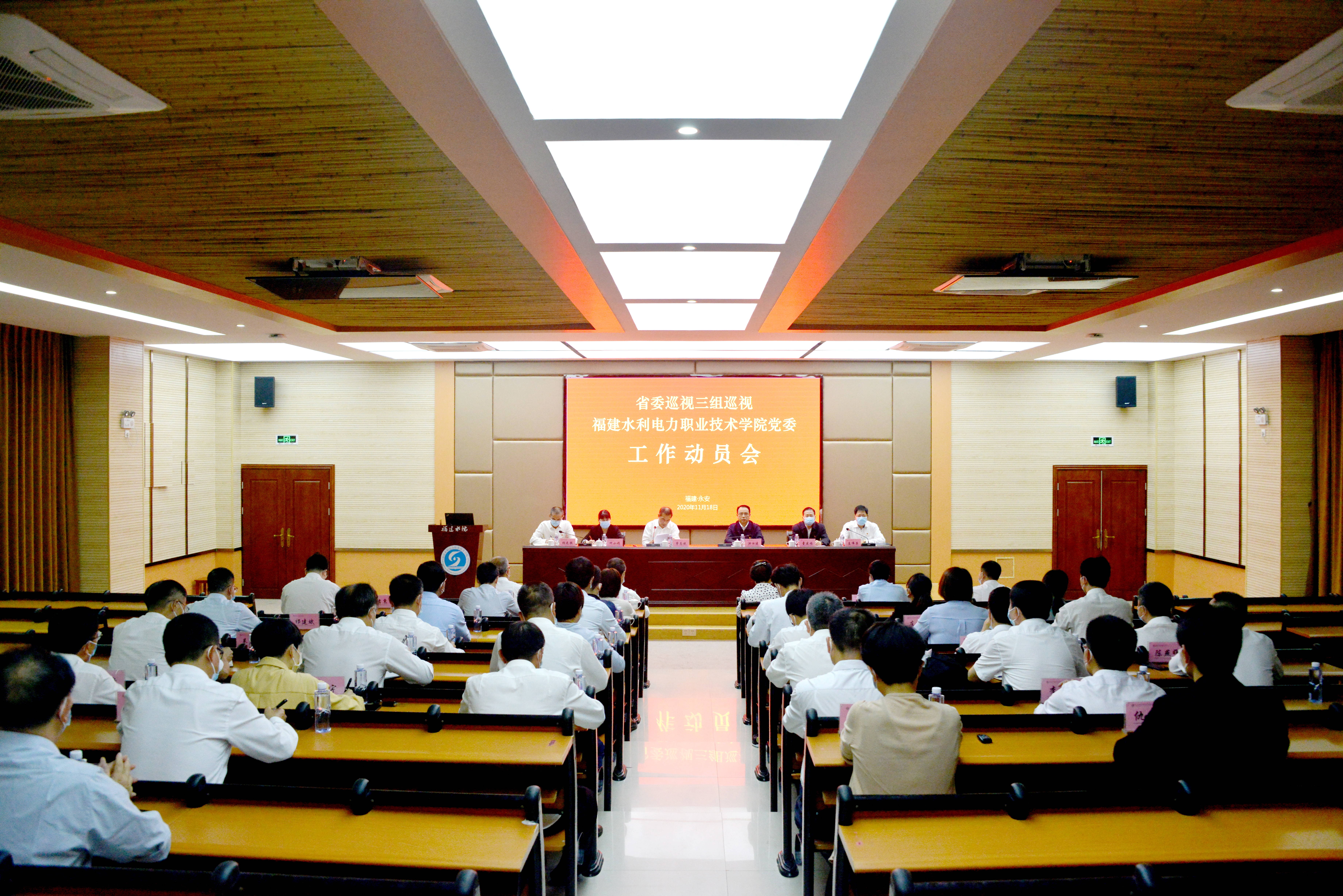 根据省委关于巡视工作的统一部署,11月18日,省委巡视三组巡视福建水利电力职业技术学院党委工作动员会召开。会前,省委巡视工作领导小组成员、省纪委副书记、省监委副主任洪仕建主持召开与院党委书记庄伟廉、院长杨元挺的见面沟通会,传达了省委书记于伟国在听取十届省委第八轮巡视情况综合汇报时的讲话精神,通报了有关工作安排。会上,洪仕建对做好巡视工作提出要求,省委巡视三组组长曾志斌作了动员讲话,庄伟廉主持会议并讲话。