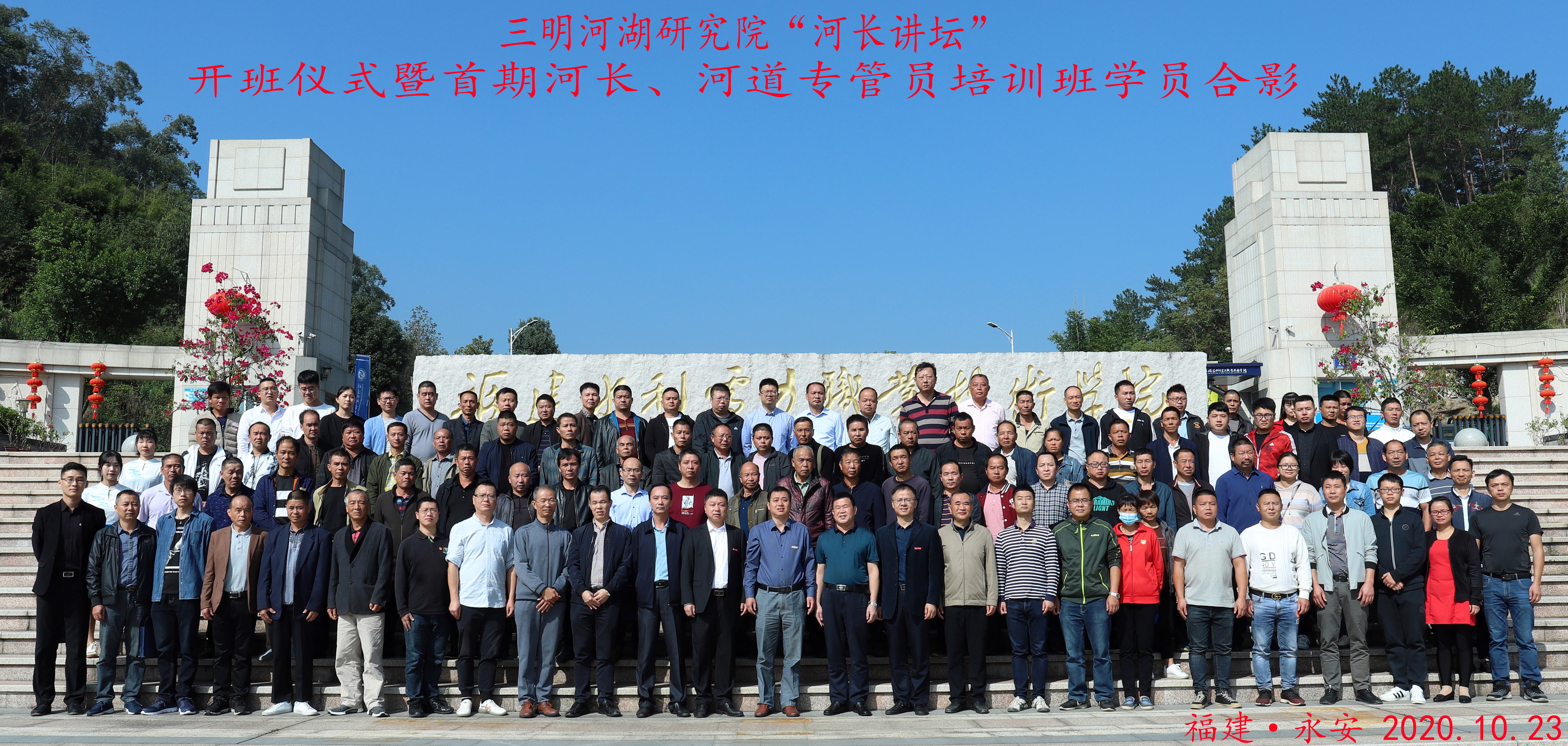 10月23日,三明河湖研究院“河长讲坛”开班仪式暨首期河长、河道专管员培训班在我院举办。学院副院长杨武盖,三明市水利局副局长李朝阳,水利工程系主任张美新、党总支书记刘华斌,永安市水利局局长林方良及三明河湖研究院教师代表、永安市所有乡镇街道河长分管领导、河道专管员代表共百余人参加。林方良主持开班仪式。