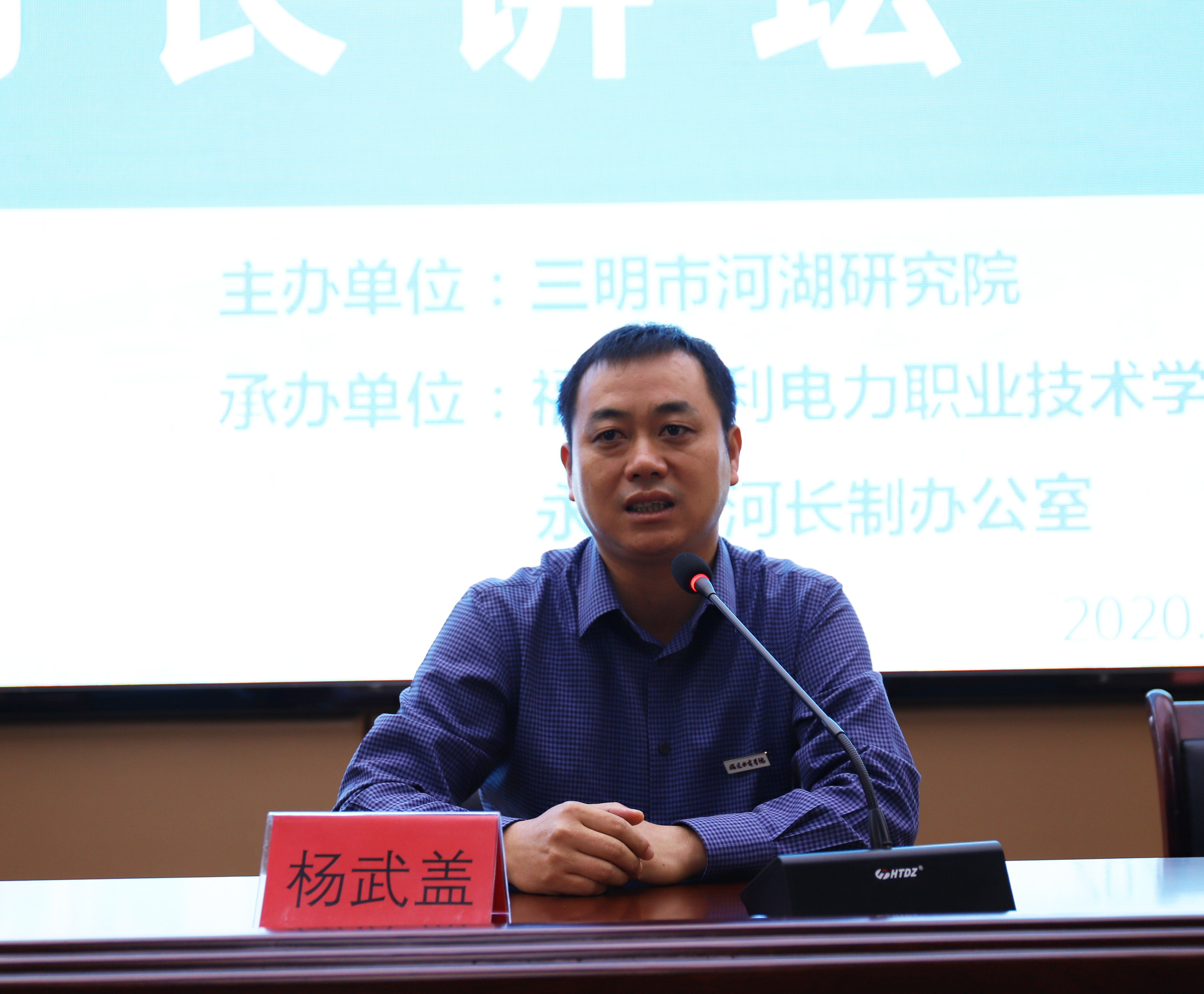 杨武盖首先代表学院对参训学员表示热烈欢迎,并向学员介绍了我院历史沿革、专业建设、校园环境等方面的基本情况和近年来快速改革发展的关键举措。他说,全体学员在学院上过一堂课就是“校友”,并对“校友”在校期间提出三点要求。第一,希望学员们珍惜当前疫情防控常态化形势下举办的学习机会,配合学校开展疫情防控;第二,希望学员们利用有限的培训时间学习吸收无限的知识,同时加强学员之间的沟通交流,增进彼此友谊;第三,学院将义不容辞做好“河长讲坛”的培训工作,发挥好增进交流的平台作用,希望大家利用好平台互相学习、共同进步。