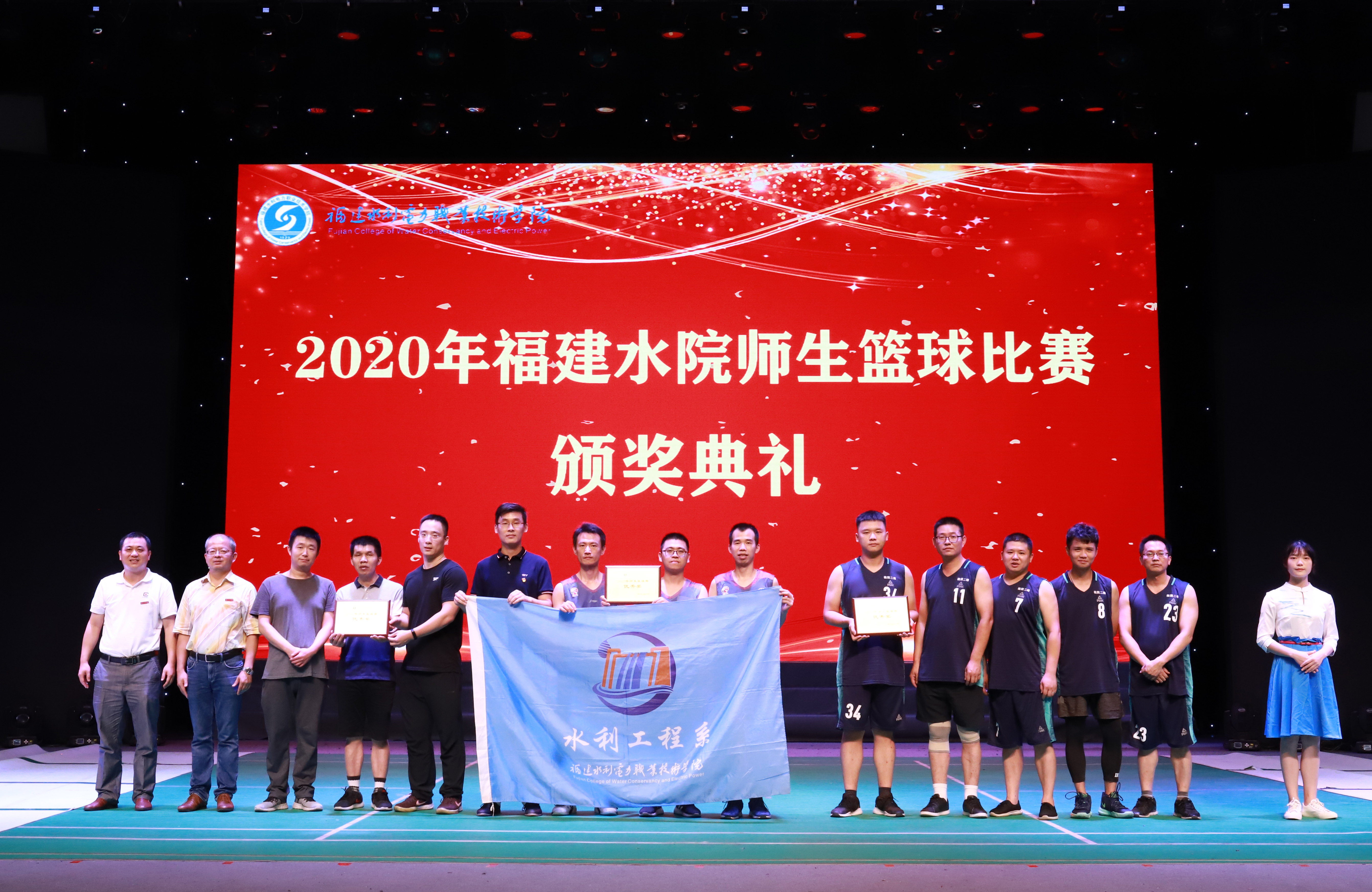 颁奖仪式结束后,教师代表队和水利工程系学生代表队为全场观众带来一场精彩的篮球友谊赛。随着裁判的一声哨响,参赛队员犀利的投篮得分,现场拉拉队员的助威喝彩,解说员的幽默解说,将比赛气氛不断推向高潮。