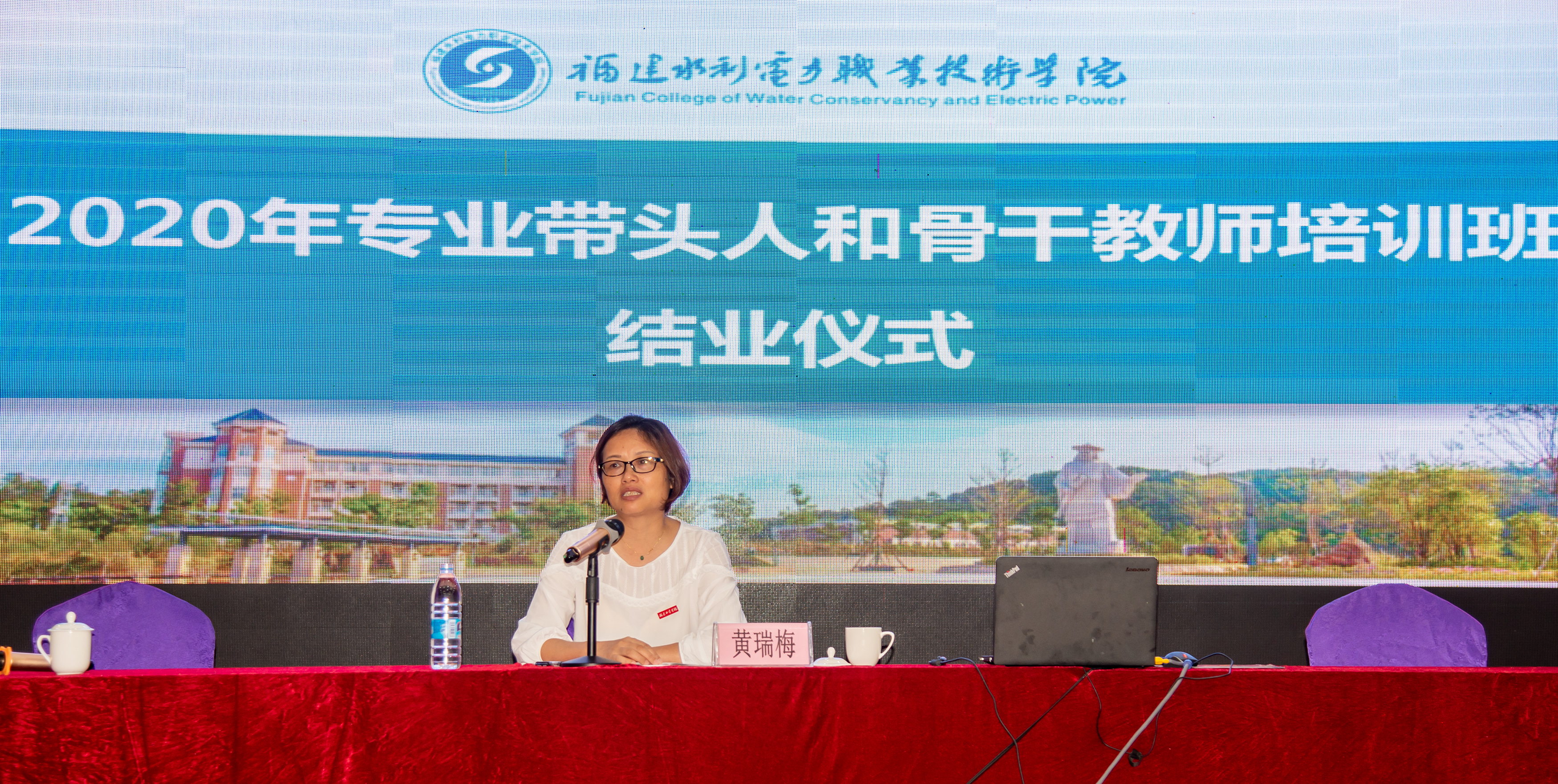 结业仪式上,学院党委副书记黄瑞梅作了总结讲话。她肯定了全体参训学员的精神面貌、学习状态和成果收获,强调了教师人才队伍建设在学校办学中的重要性,指出开展提升教师队伍素质培训的必要性,并勉励全体参训学员以主人翁的姿态推进“三教”改革,勇于创新,脱颖而出,同时做到:一是深入学习习近平新时代中国特色社会主义思想,深刻领会立德树人的根本任务,善于研读政策文件,既要丰富实践经验,也要提升理论水平。二是深入思考与反思,寻求突破点及创新点,拓宽视野,明晰思路,学会“超跑”而不是“跟跑”。三是按照“不忘初心、牢记使命”主题教育的总要求,守初心、担使命、找差距、抓落实。