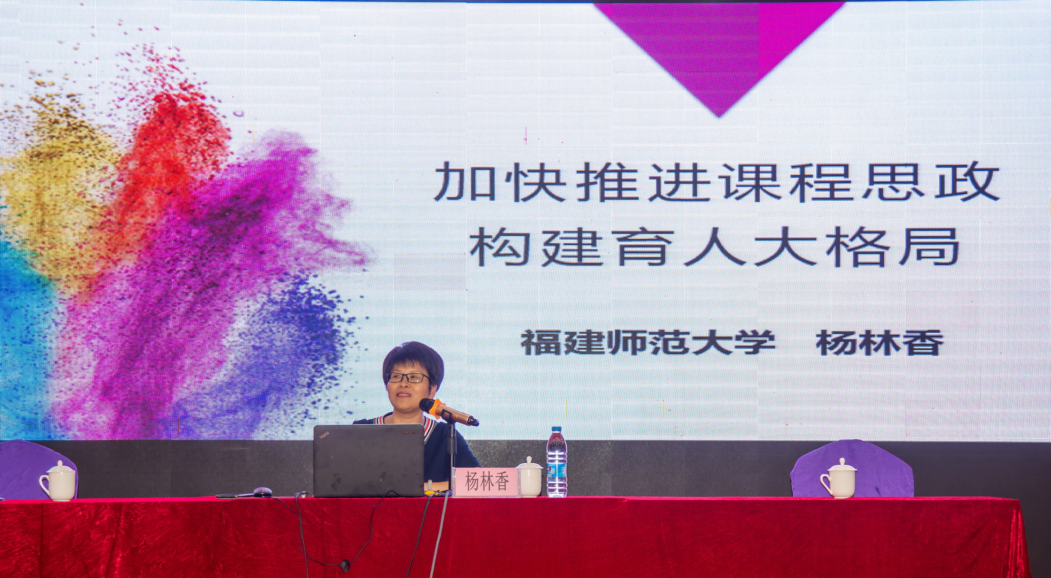 福建师范大学杨林香教授以“课程思政是不是让专业课教师讲政治课”为引,作《加快推进课程思政,构建育人大格局》专题讲座。讲座从课程思政的背景、课程思政的内容、课程思政的路径等三个方面,全面分析了课程思政的内涵及推进路径。