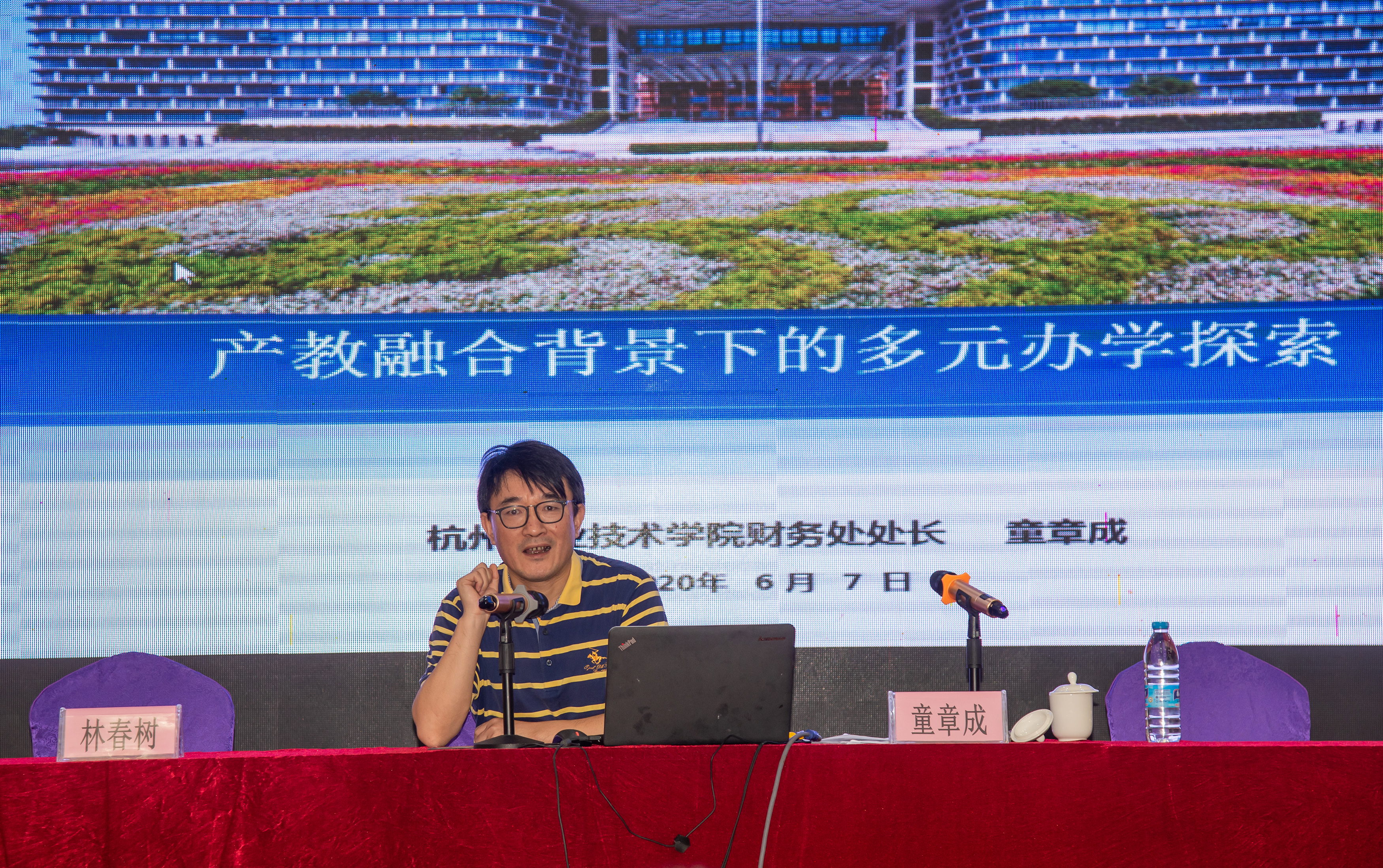 此次培训邀请了泉州职业技术大学副校长郭霏霏等5位专家作了5场精彩报告。杭州职业技术学院童章成教授作《产教融合背景下的多元办学探索》专题讲座,分享了基于杭职院实践的产教融合经验,认为高职院校要理性、自信,深耕“校企共同体”,全面提升校企合作水平。