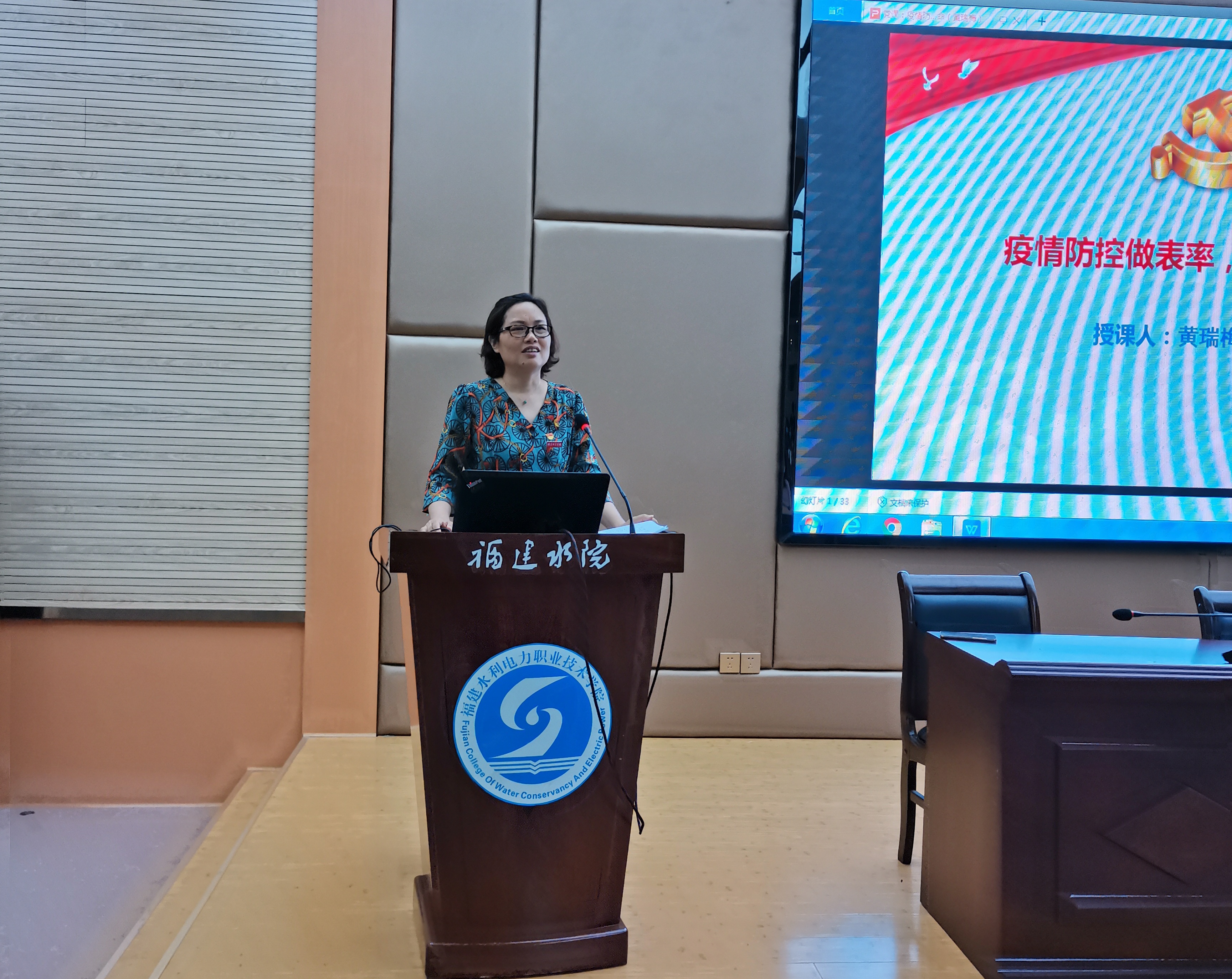 黄瑞梅以《疫情防控做表率,返校复学担使命》为主题,从学院抗击新冠疫情的工作谈起,详细介绍为实现返校复学,广大教职工党员冲锋在前,充分发挥了党员先锋模范作用。她通过从教生涯中六个方面生动具体的案例进行授课,深情回顾当年上大学、入党时的情形,亲切地与大家分享为什么要加入中国共产党的真实想法:一是来自身边党员领导同事的影响;二是源于对理想的向往、对真理的追求。她强调,不能为了获得个人利益而入党,而是要得到精神层面的跨越。