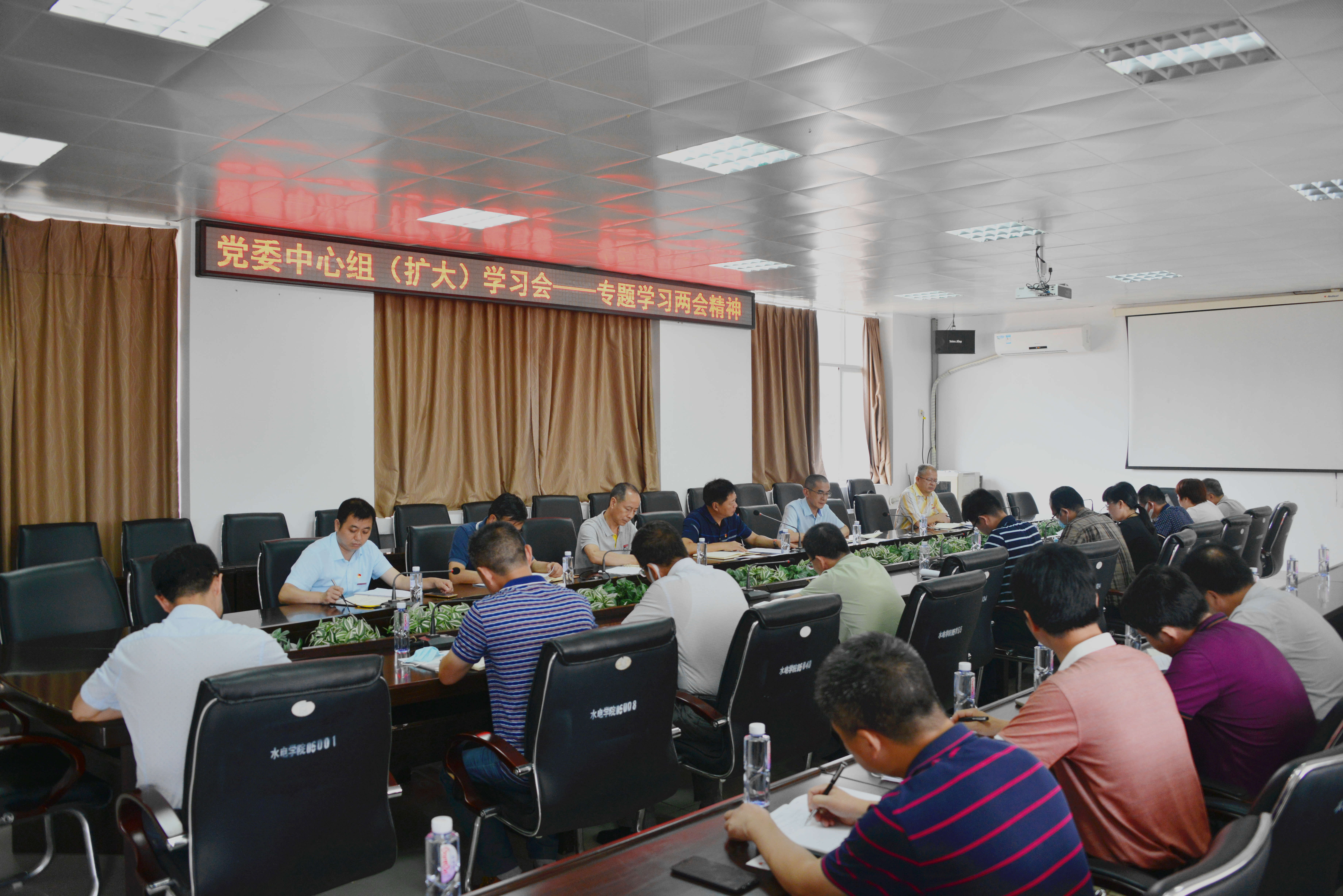 6月1日下午,学院召开党委中心组学习会,专题学习两会精神。党委书记庄伟廉主持会议并讲话,在家的院领导班子成员出席会议,全体副处级干部参加会议。