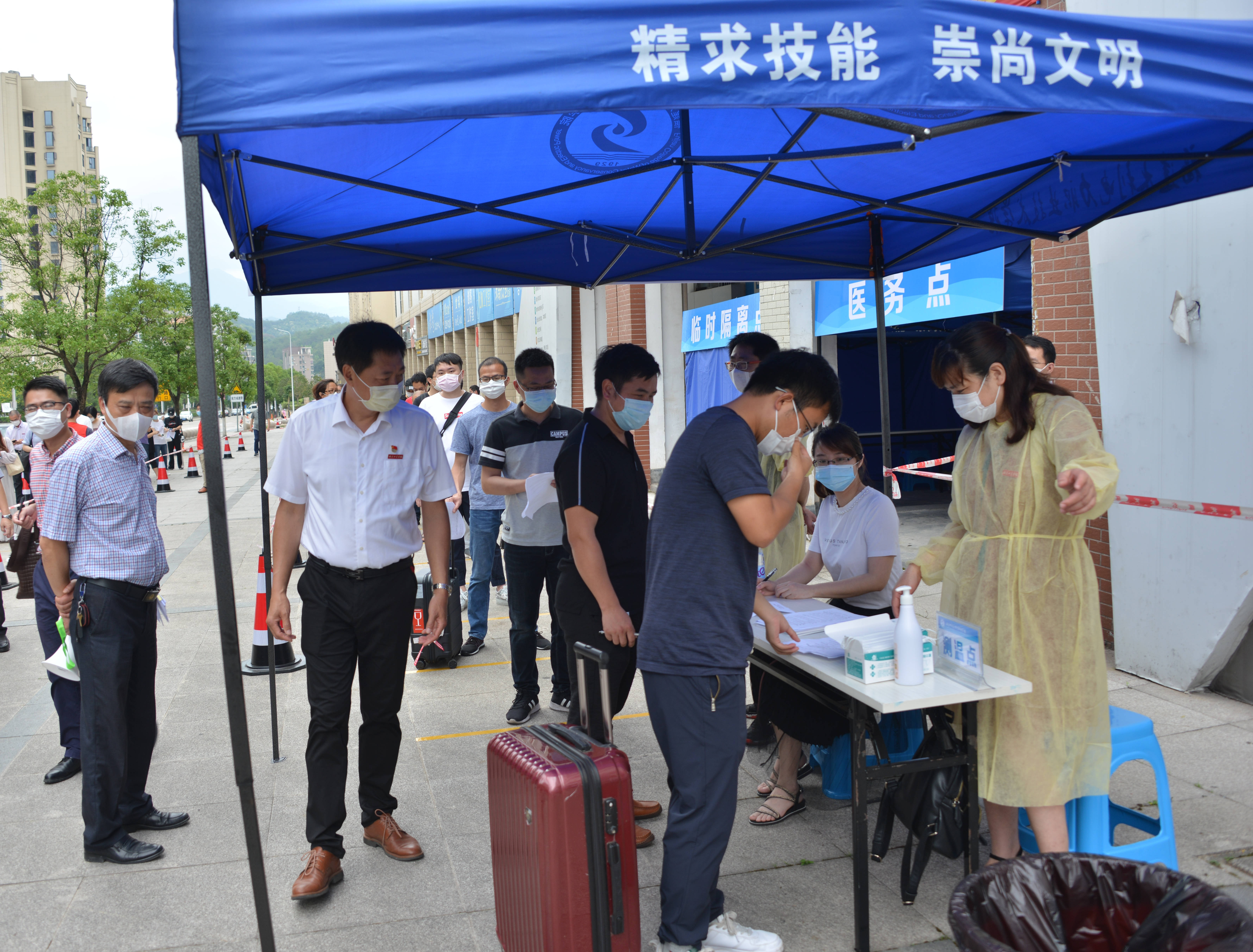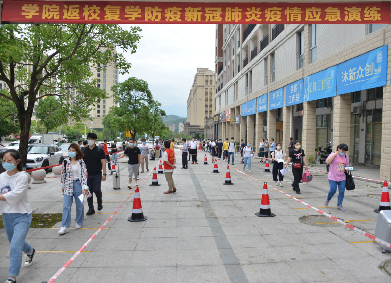 5月8日上午,学院开展返校复学防控新冠肺炎疫情应急演练,对学院落实抓细返校复学疫情防控等工作进行情景模拟和现场演练。学院新冠肺炎疫情防控工作领导小组组长庄伟廉、杨元挺带领全体领导班子成员全程指导演练工作,相关部门(单位)人员及全体专兼职辅导员共计200余人参加演练。
