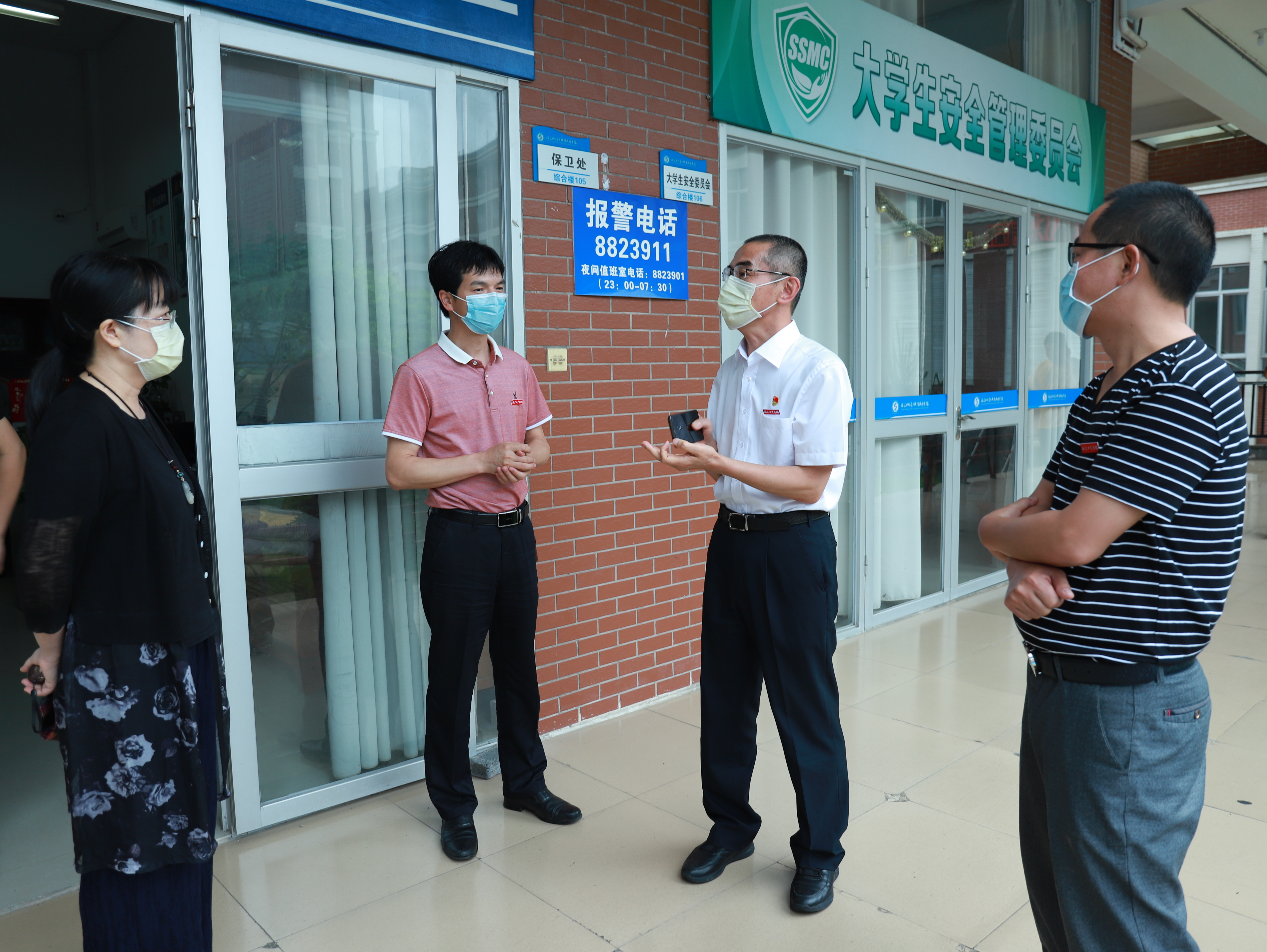 随后,杨元挺一行到保卫处、学生工作部(处)、团委,听取学生返校复学开学前、返校时、开学后等各项工作的准备情况。他指出,学生返校复学准备工作要把前期教职工的疫情防控和学生返校开学后的疫情防控工作结合起来,做好校园防护,确保师生的身体健康和生命安全;把细节防护和突发情况结合起来,做细、做实每个环节,加强宣传引导,全面普及公共卫生和防控知识,增强师生自我保护意识。他强调,要全力做好学生返校后的各项服务保障工作,从细处着手,做实做细每一个环节,做到万无一失,坚决守护好校园安全。