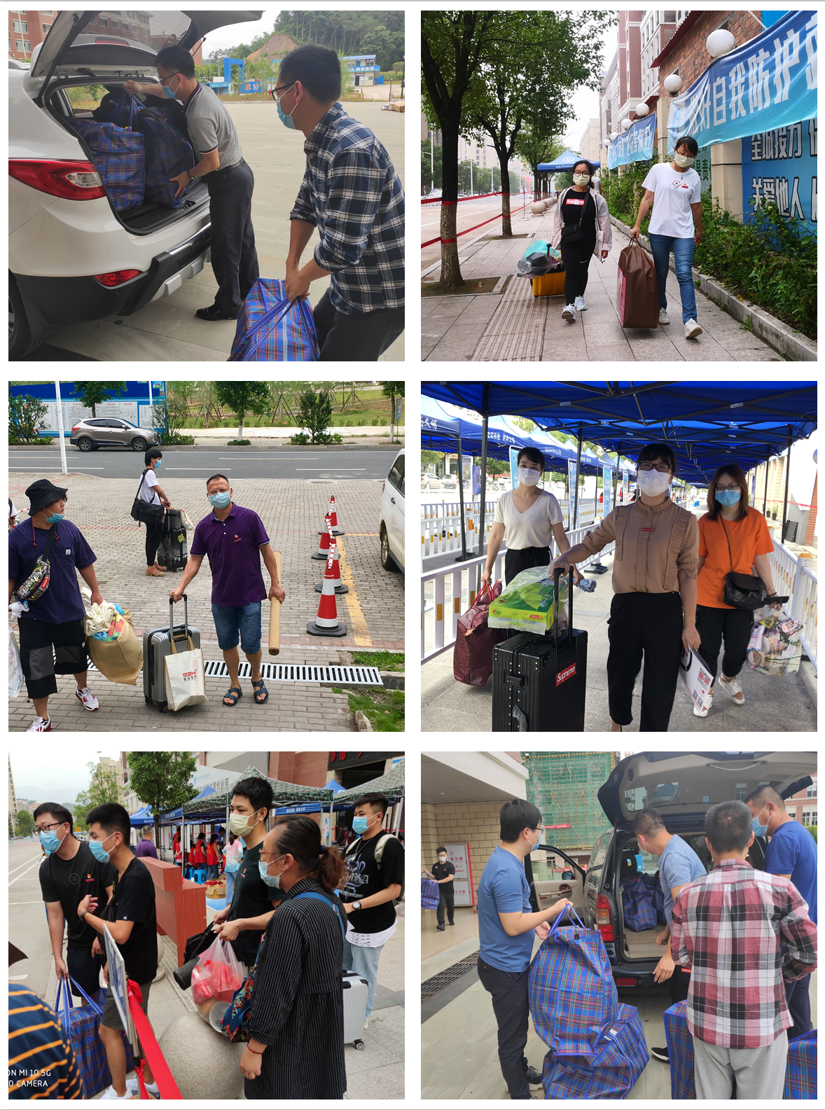5月23日起我院学子分三批错峰返校。在疫情防控工作要求极高的特殊时期,为确保学生报到安全有序,学院党委发出倡议,号召全体教职工党员投身学生返校志愿服务,教职工党员积极响应。包括院领导在内的教职工党员自觉组成“党员志愿服务队”支援返校一线工作人员,开展“不忘初心,助力复学”志愿服务工作,发挥党支部战斗堡垒作用和党员先锋模范作用,成为学生返校报到现场一道亮丽的风景线。