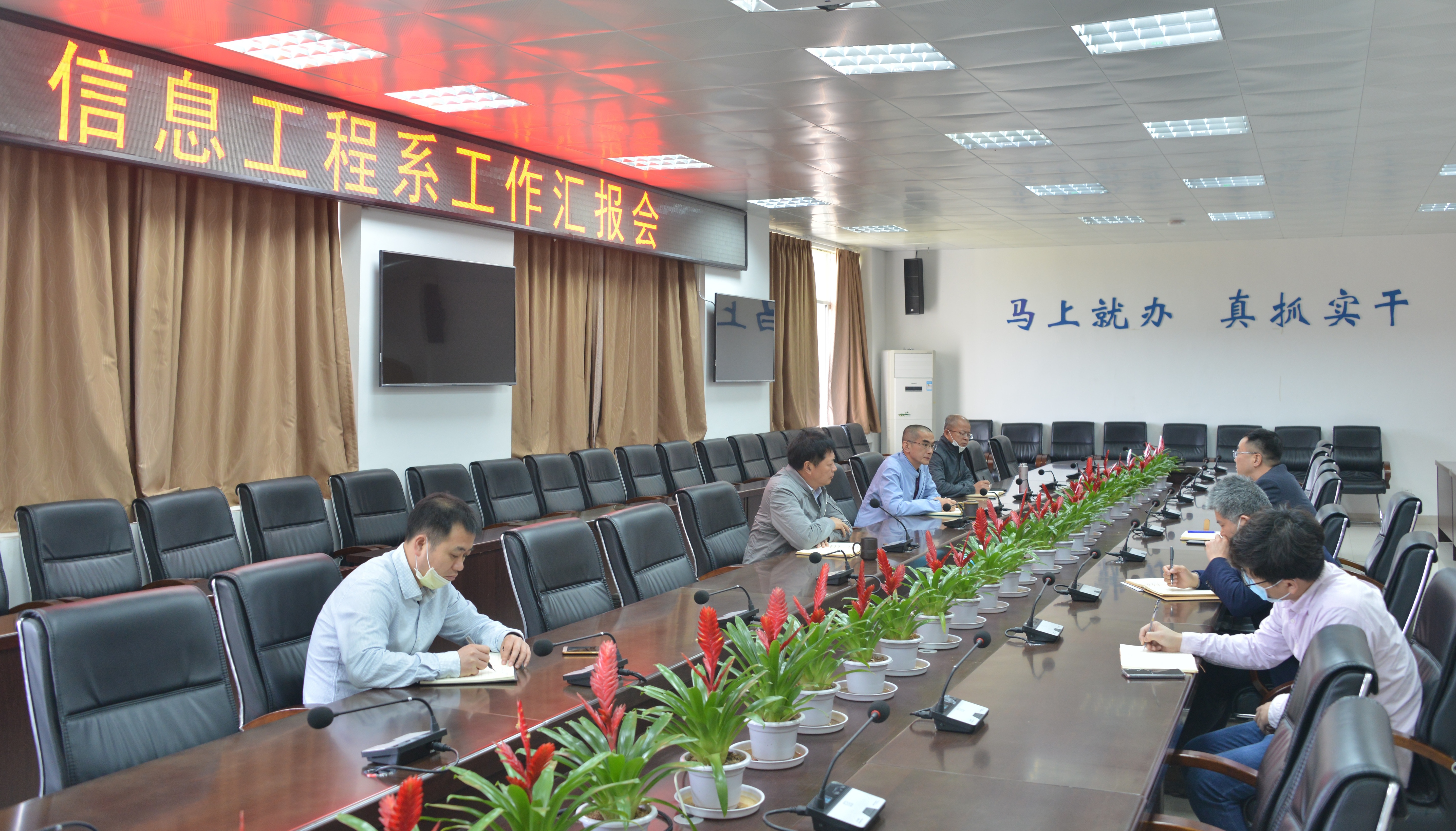 会上,汪卫星汇报了信息工程系近一段时间的工作情况和今后的改革发展思路。庄伟廉对汪卫星近一个月来开展的工作给予肯定,支持信息工程系的改革发展思路,他希望,信息工程系领导班子能继续发力,以点带面,抓好落实,要精诚团结,勇于创新,带领信息工程系大步向前,引导师生积极干事创业,集中力量抓好各项工作。