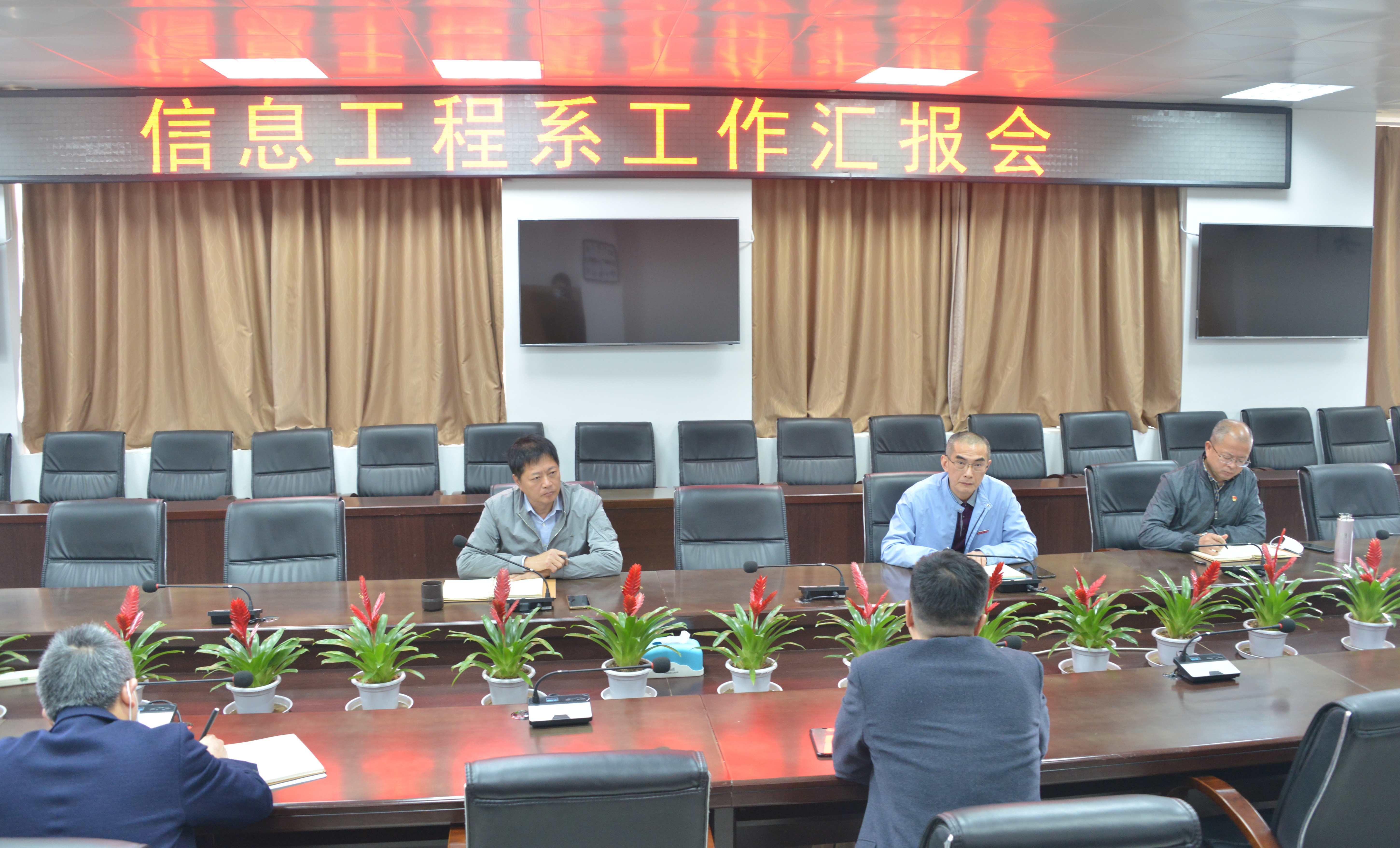 4月13日,学院在禹兴园1-506会议室召开信息工程系工作汇报会。学院党委书记庄伟廉、院长杨元挺,副院长池长全(信息工程系工作组组长)、杨武盖,工作组副组长汪卫星、朱庆喜出席会议。