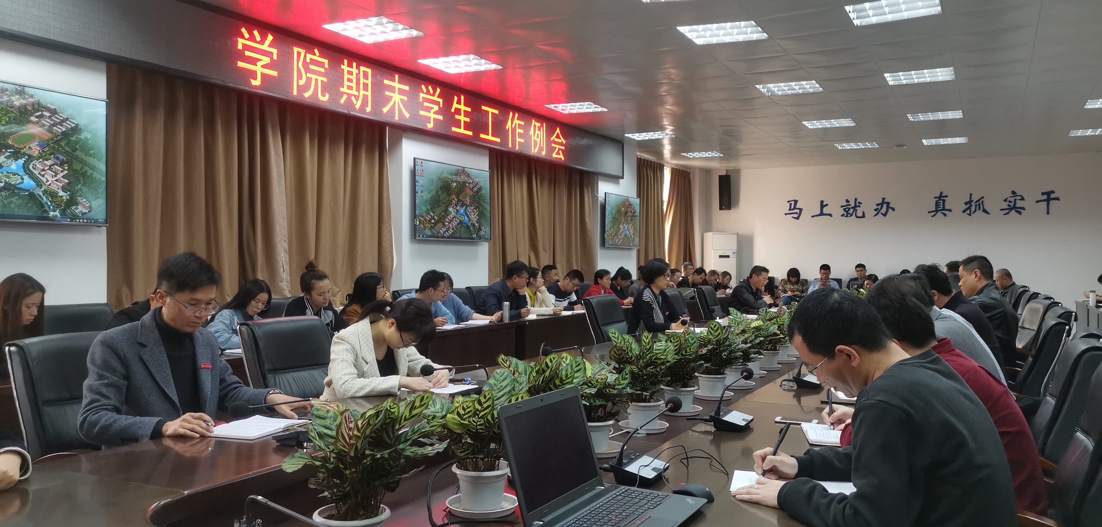 会上,学工处负责人陈燕晖就期末考试、宿舍安全管理以及寒假重点工作做了安排:一是期末各专业陆续进入考试阶段,各系要加强考风考纪教育,倡导诚信考试。二是做好期末宿舍安全管理工作,认真落实安全检查。三是做好寒假期末成绩家校联系,车票预定等工作。保卫处、后勤处相关负责人也先后对期末安全生产排查及假期的修缮工作做了工作要求,强调学生离校返乡要注意交通安全、宿舍水电安全、贵重物品保管等方面安全,各系部要引导学生寒假期间拒赌拒毒、警惕宗教渗透、防范网络诈骗、校园贷等。