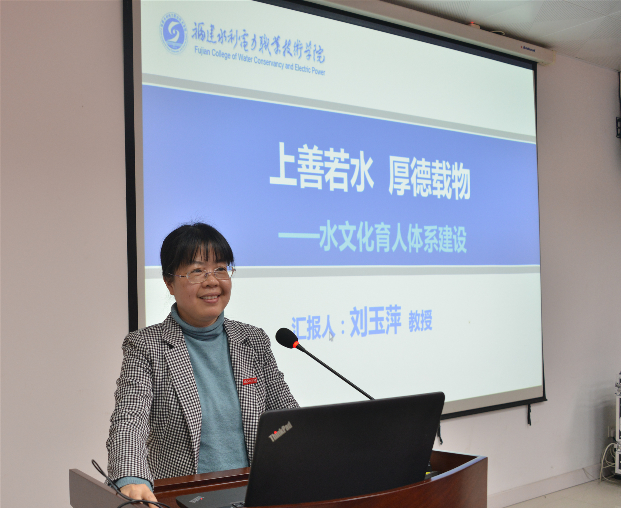 会上,学院党工部部长刘玉萍教授作了题为《水文化与校园文化建设研讨》的交流研讨,福建省水利水电勘测设计研究院院长何文兴作了题为《生态水利理念及设计实践》的主题发言。