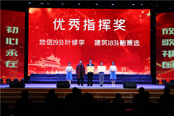 感怀峥嵘岁月,唱响红色赞歌。经过前期各系部的6场预赛,最终脱颖而出的15支队伍进入决赛。比赛中,各班级的辅导员也一同上场与同学们共同演绎红歌的魅力。经过激烈角逐,来自地信1931班的《保卫黄河》摘得桂冠,叶修李、鲍萧选两位同学获得本次比赛的优秀指挥。