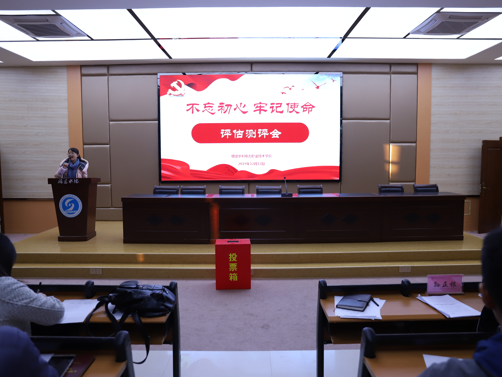 12月12日,根据主题教育工作部署,我院召开“不忘初心、牢记使命”主题教育评估工作座谈会及测评会,省委教育工委巡回指导一组副组长孙正根到会指导。师生代表20人参加了座谈,教职工代表及学生党员代表200人参与测评。