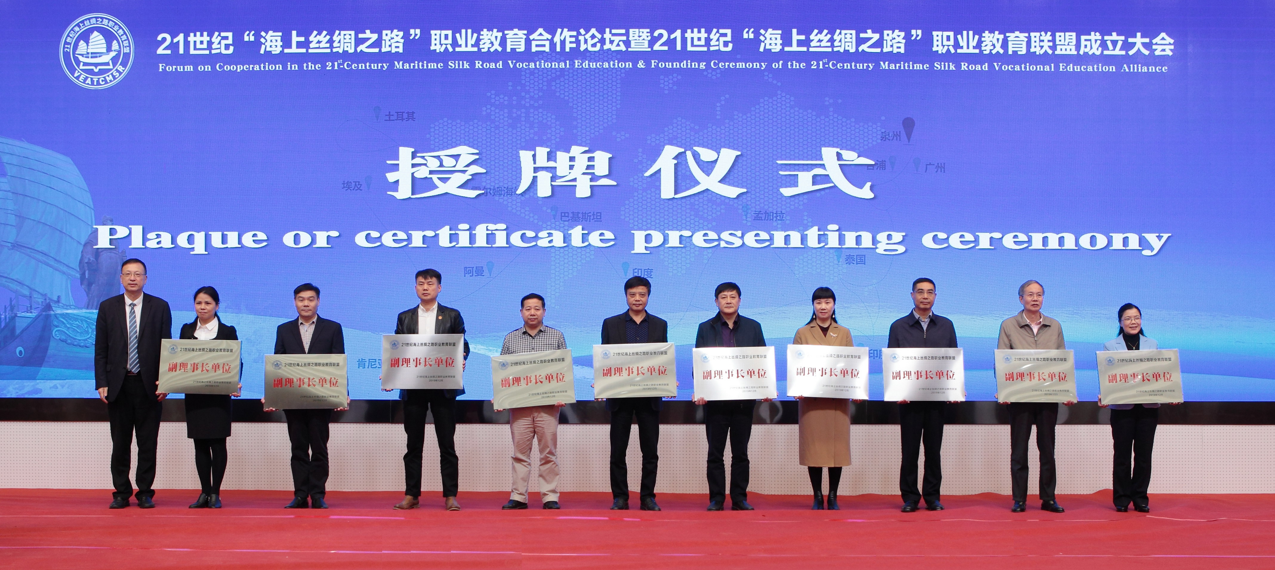 12月17日,21世纪海上丝绸之路职业教育合作论坛暨21世纪海上丝绸之路职业教育联盟成立大会在泉州举行。来自16个国家和中国台湾地区30所高校、20多个合作机构以及国内80多所本专科院校共350多名领导嘉宾参加会议。我院当选21世纪“海上丝绸之路”职业教育联盟副理事长单位,副院长李建平出席大会并代表学院接受授牌。