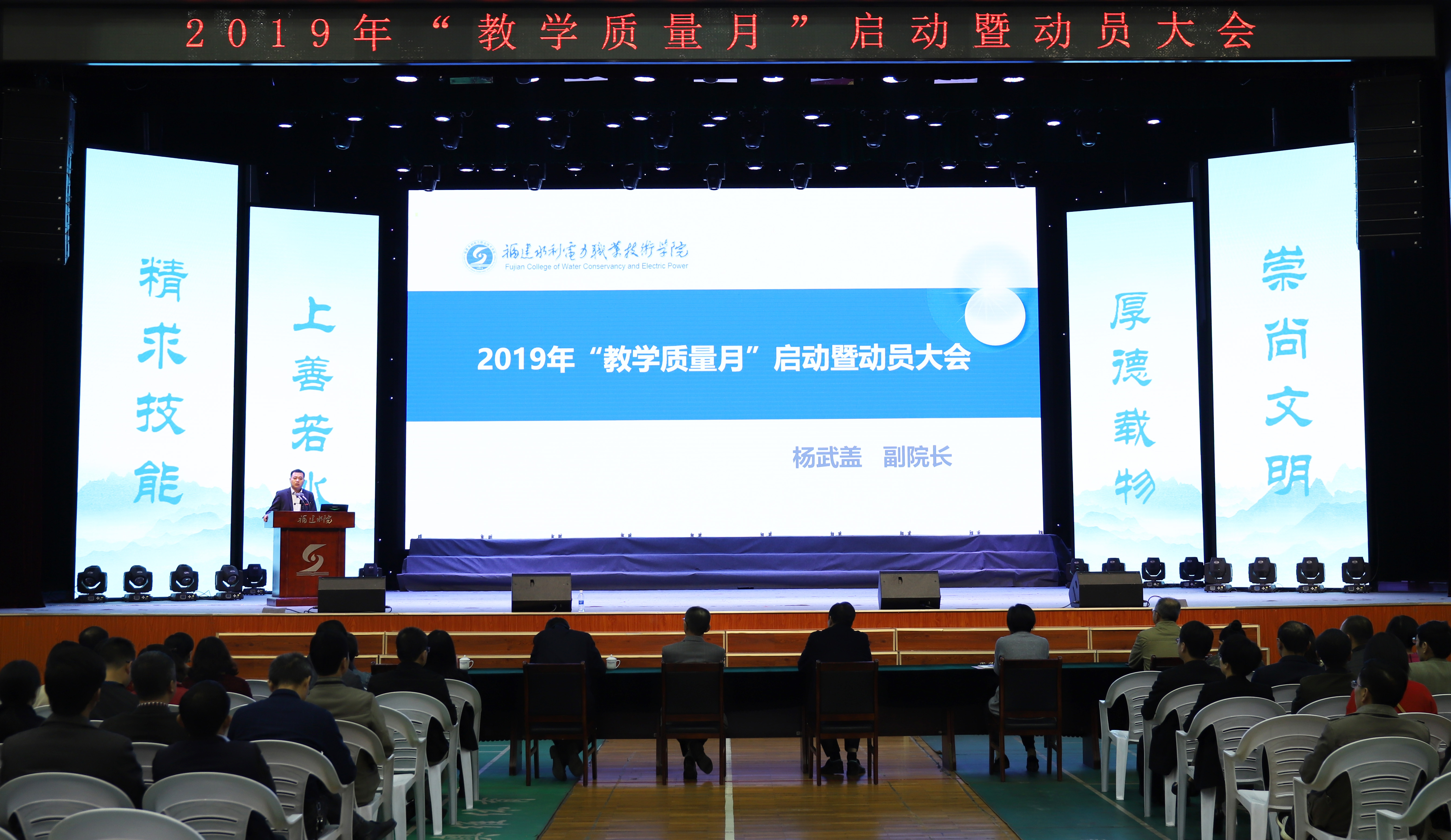 为深入贯彻习近平总书记教育思想,落实立德树人根本任务,坚持不懈培育优良校风、教风和学风,推动我院教学工作稳步发展,全面提高教学质量和人才培养质量,11月19日下午,学院2019年“教学质量月”启动暨动员大会在路港体育教学馆隆重举行。学院党委书记庄伟廉,院长杨元挺,党委副书记黄瑞梅,副院长李建平、池长全等在家院领导及全体教职员工参加会议,杨武盖主持动员大会。