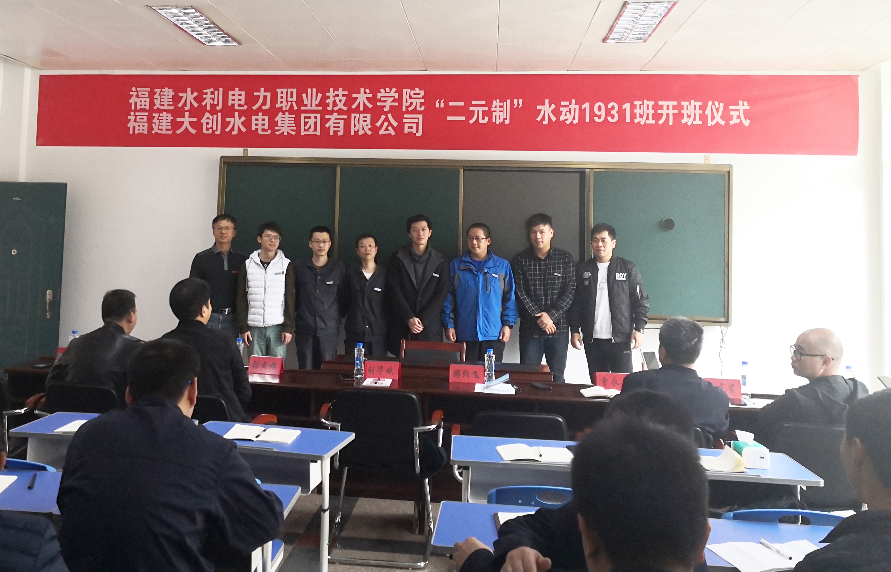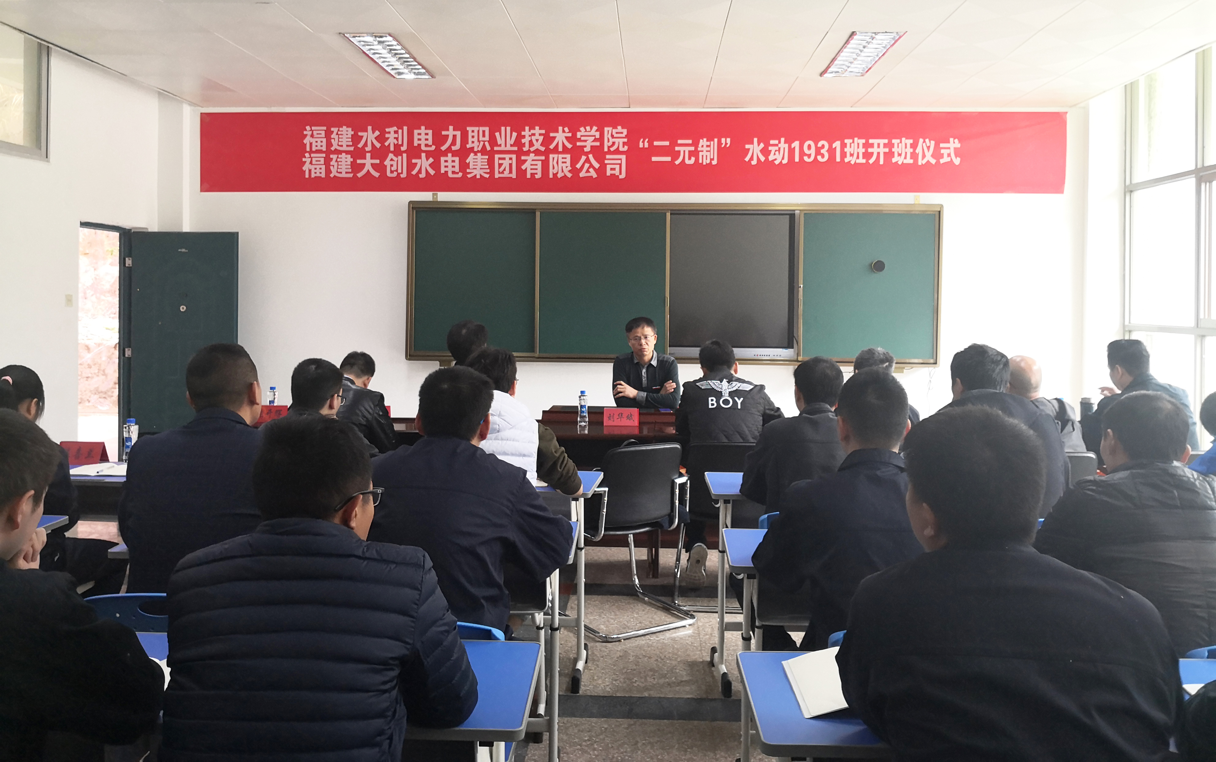 11月23日,我院水利工程系与福建大创水电集团有限公司举行了二元制水动1931大创班开班典礼。水利工程系党总支书记刘华斌、水动教研室主任张云根、专任教师肖绍文、张开辉,福建大创水电集团有限公司副总经理游朗飞,电力部副经理曾永平、饶友星及生产科主任张冬进等出席了开班典礼。