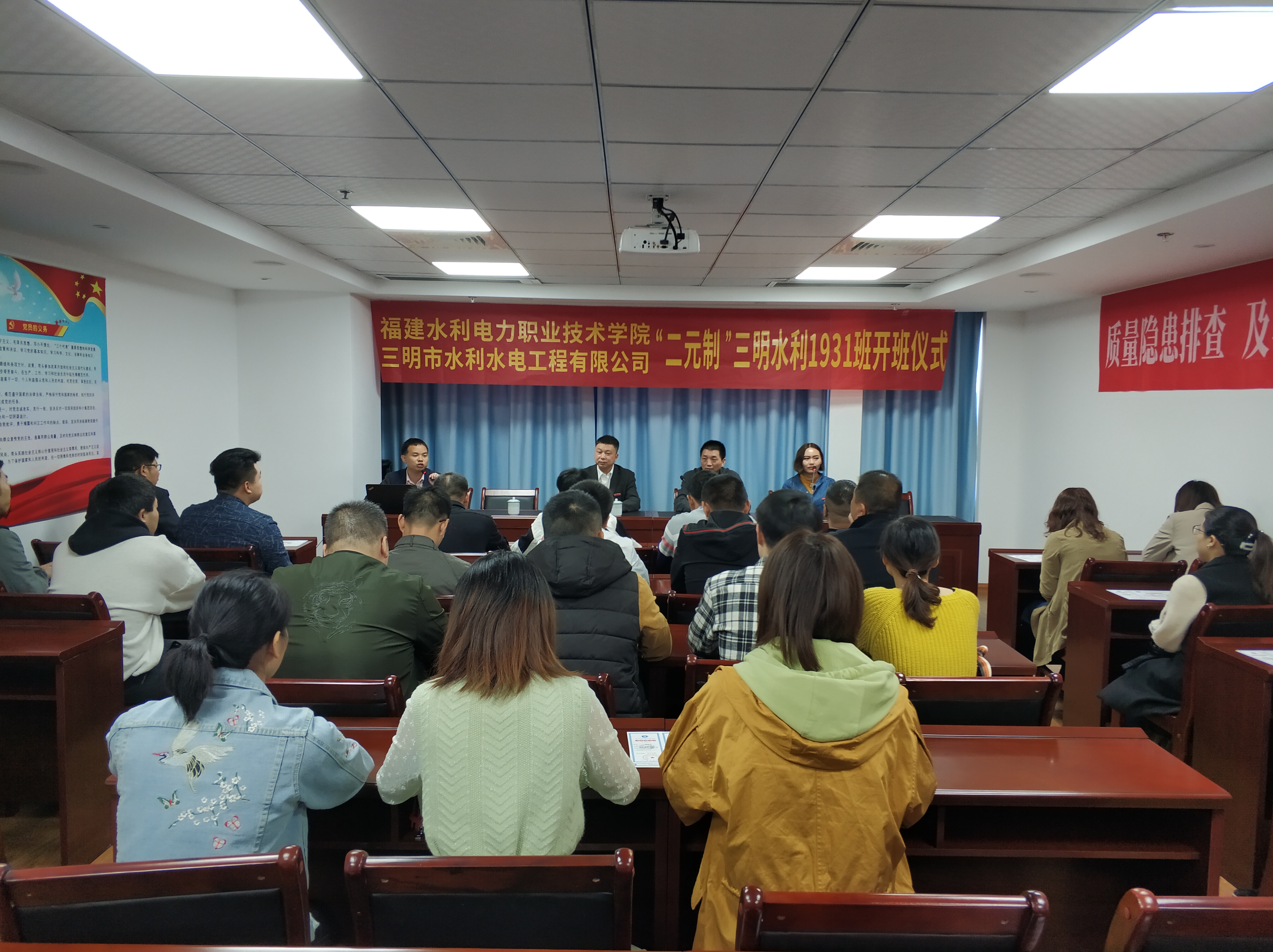 11月24日,我院水利工程系与三明市水利水电工程有限公司举行了“二元制”技术技能人才培养模式改革试点——水电1931三明水利班开班仪式。水利工程系负责人张美新、三明市水利水电工程有限公司总经理乐多乾等出席了开班仪式。