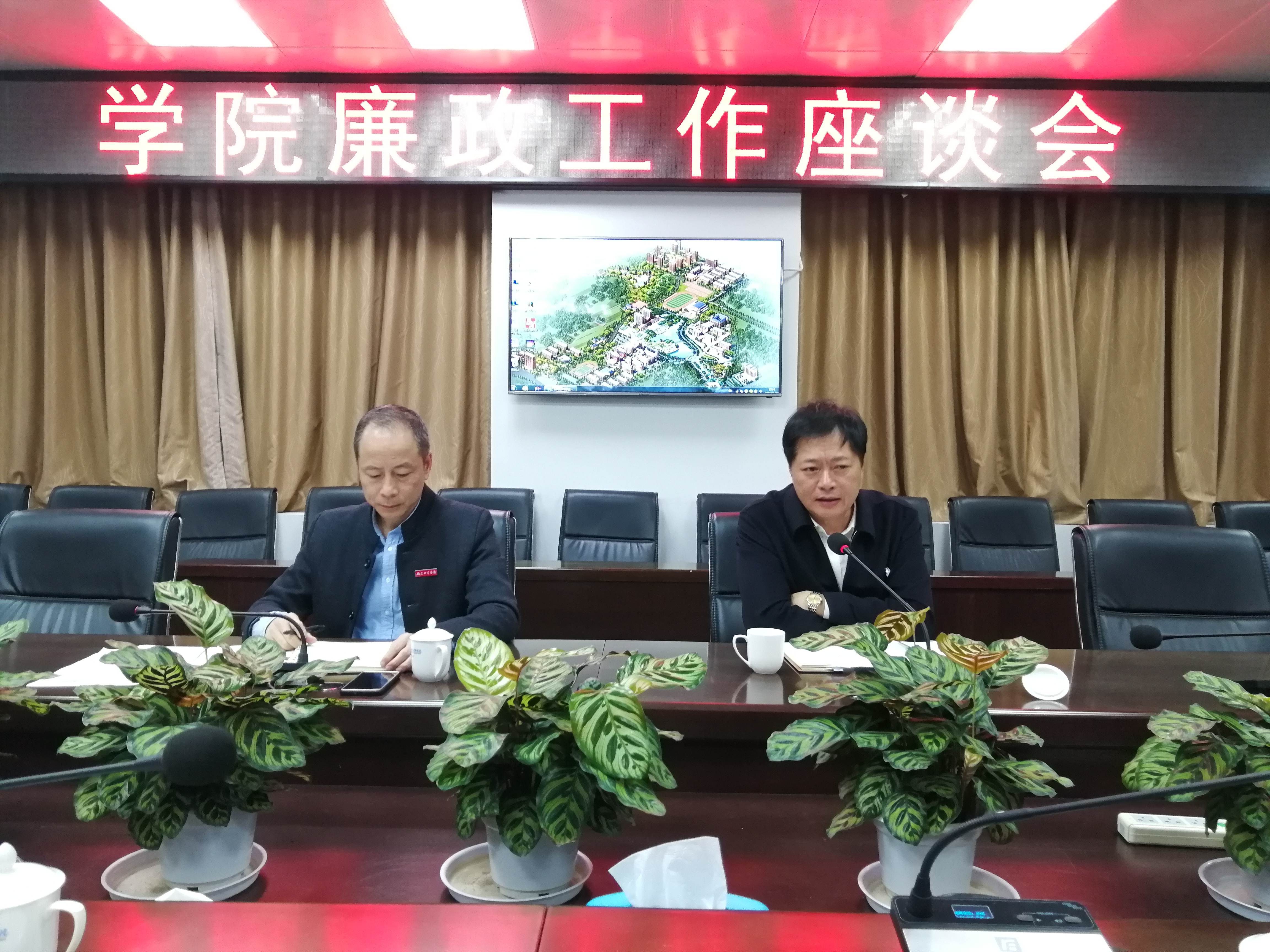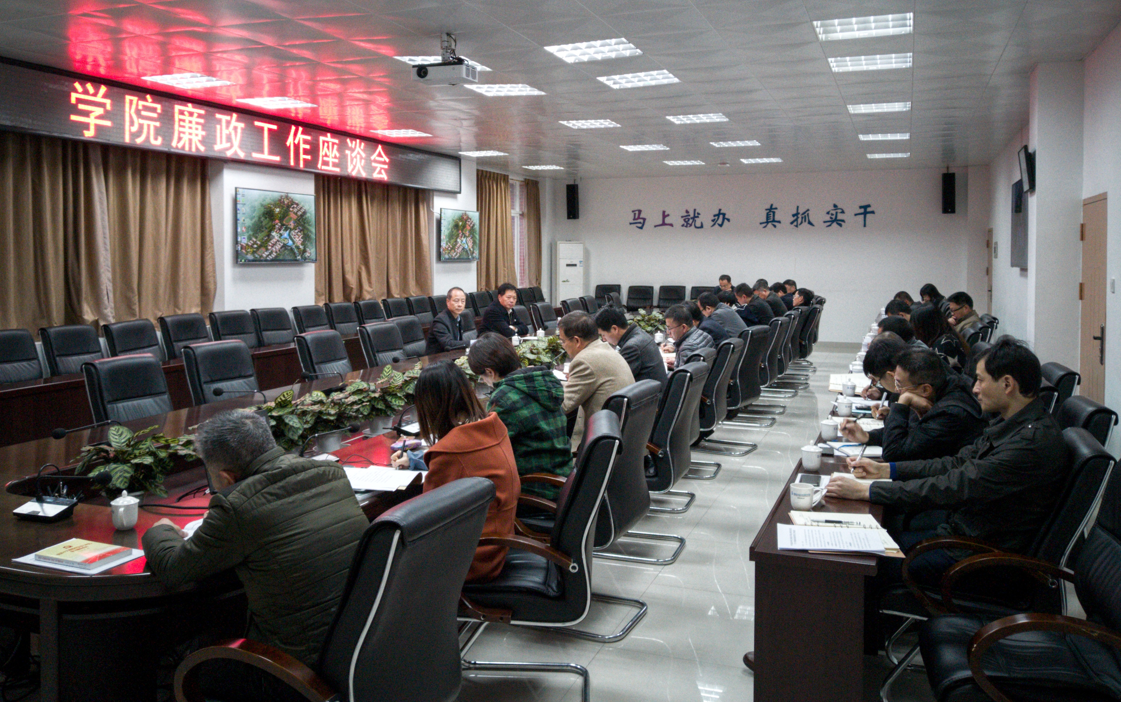 11月28日下午,学院纪委在禹兴园1-506会议室召开廉政工作座谈会。党委书记庄伟廉、纪委书记邱祥光出席会议,各部门负责人、各党总支负责人和各系部主任、马克思主义学院院长、纪检监察审计处全体人员共30余人参加了座谈会。