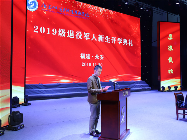 11月30日,学院迎来了首届高职扩招退役军人新生,并在路港体育教学馆隆重举行学院2019级退役军人新生开学典礼。学院院长杨元挺,副院长杨武盖,各系教师代表,相关职能处室负责人以及学院2019级退役军人新生共计500余人参加了开学典礼。杨武盖主持开学典礼。