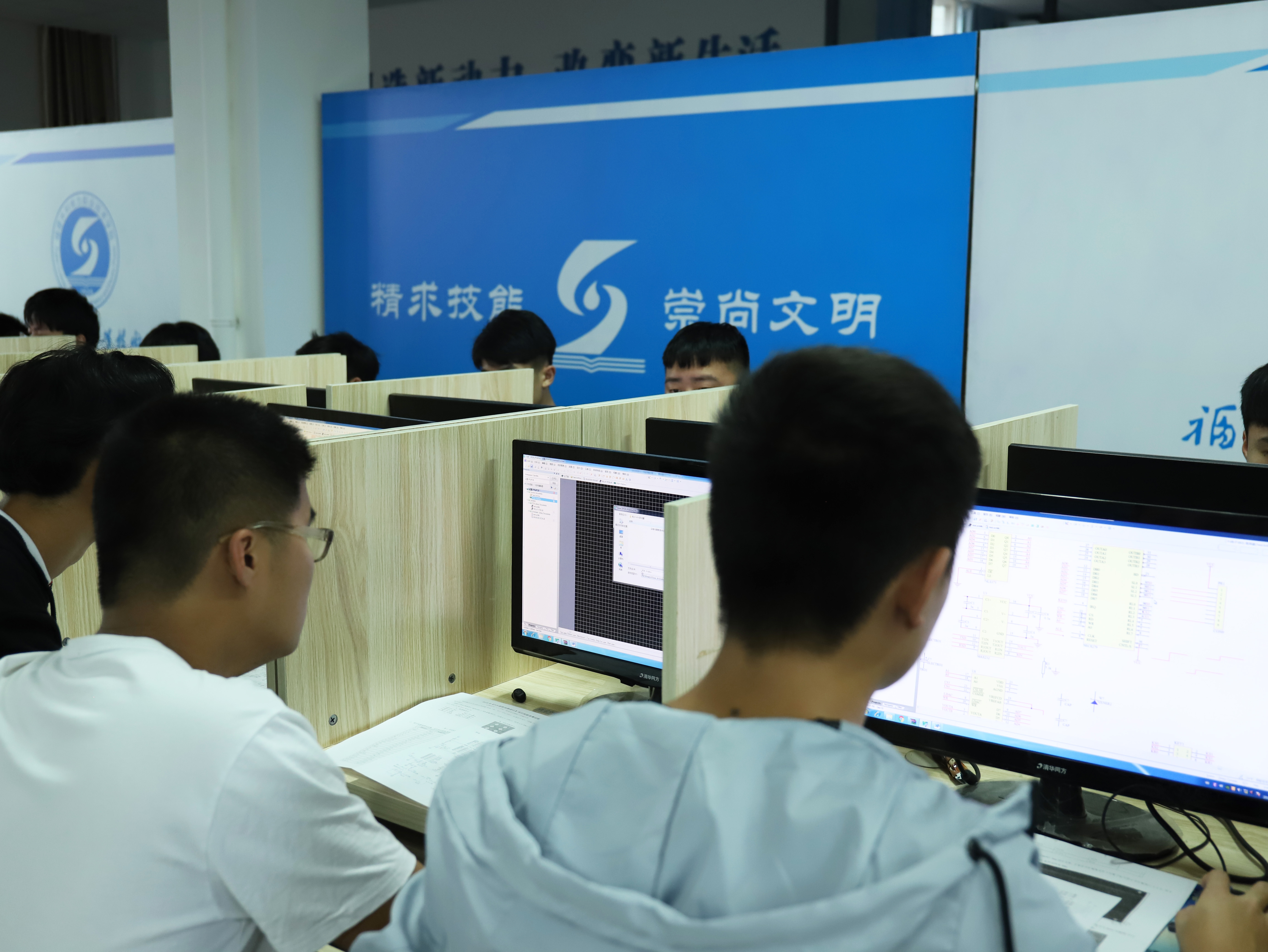 随后,裁判员代表张晓光和参赛选手代表郑智雄依次宣誓。黄瑞梅触摸仪式启动球,宣布第十五届技能比武大赛开赛。会后,黄瑞梅等一行还观摩了信息工程系“企业沙盘模拟经营”“PCB板级电路设计”项目的比赛。