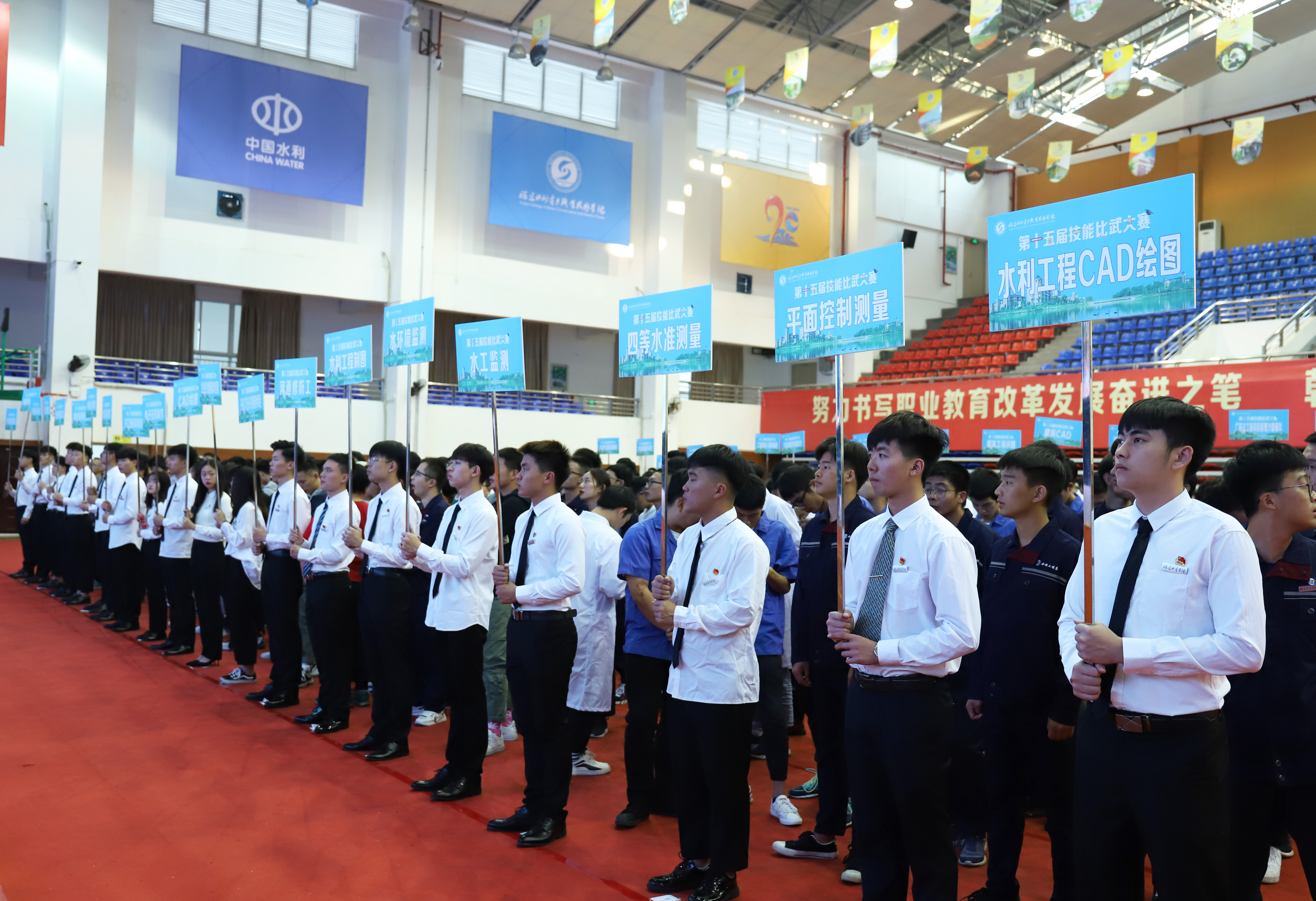 11月12日下午,学院第十五届技能比武大赛开赛仪式在路港体育馆隆重举行。此次开赛仪式由教务处主办,信息工程系承办。学院党委副书记黄瑞梅,教务处、质量保障处、各系部领导出席,教务处处长包晓晖主持仪式。40个竞赛项目的选手和指导老师列队参加了开赛仪式。