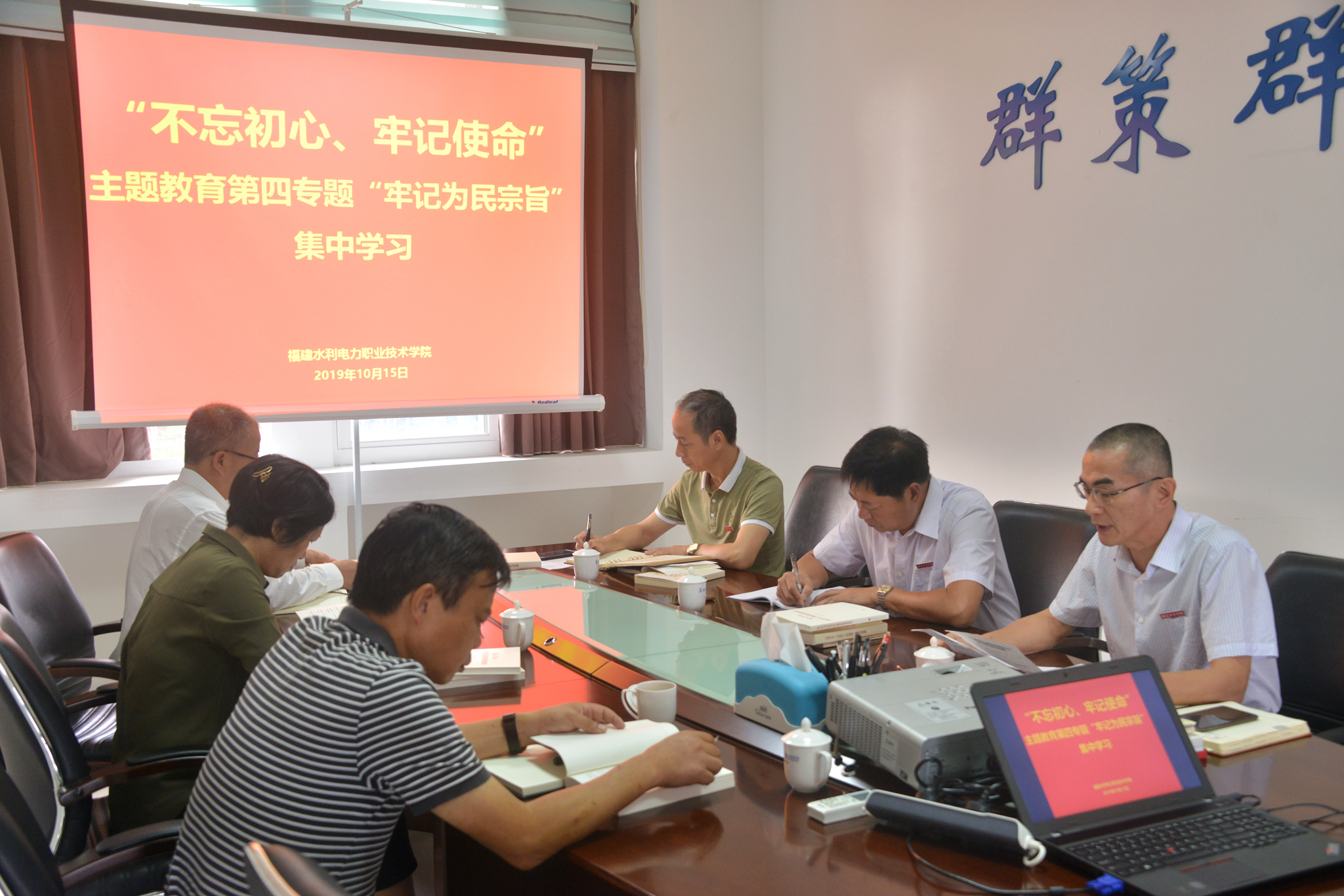 10月15日,学院党委开展“不忘初心、牢记使命”主题教育第四专题“牢记为民宗旨”集中学习和研讨会。在家党政领导班子、全体正科级以上干部共40余人参加了学习研讨。