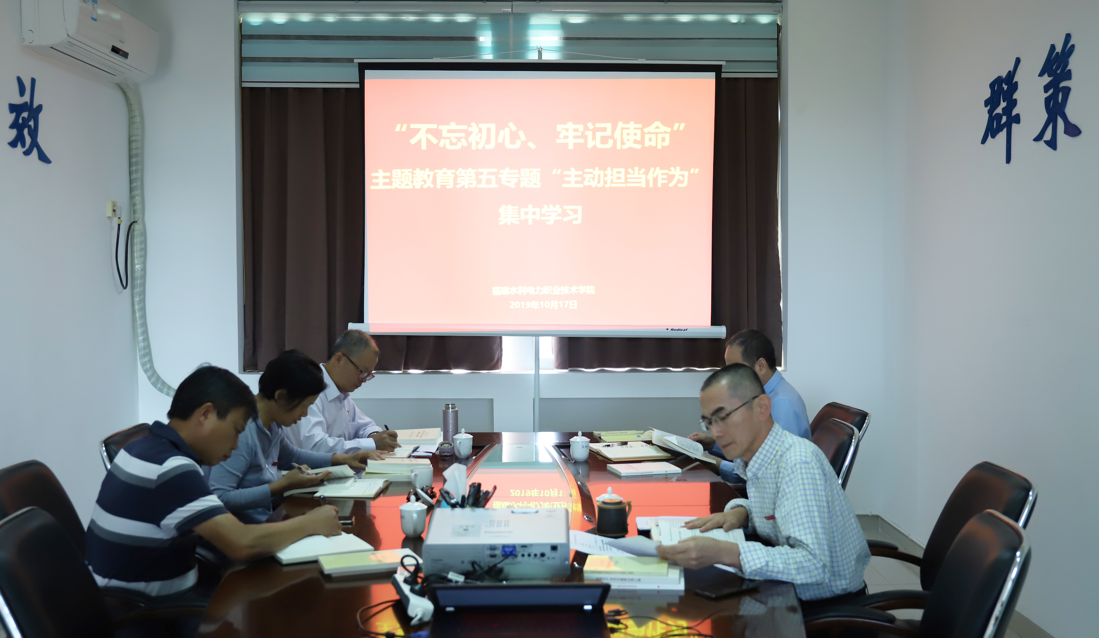当天下午,全体正科级以上干部在禹兴园1-506围绕第五专题“主动担当作为”进行集中研讨,研讨会由院长杨元挺主持。副院长池长全作了题为《主动担当作为,推动事业发展》的重点发言,教务处处长、电力工程系、信息工程系、机电工程系主任从各自的工作实际出发谈如何主动担当作为,分别作了《知行合一,担当作为》《主动担当作为,提高人才培养质量》《直面职责与问题,主动担当作为》《主动担当作为,推进系部工作上新台阶》主题发言。
