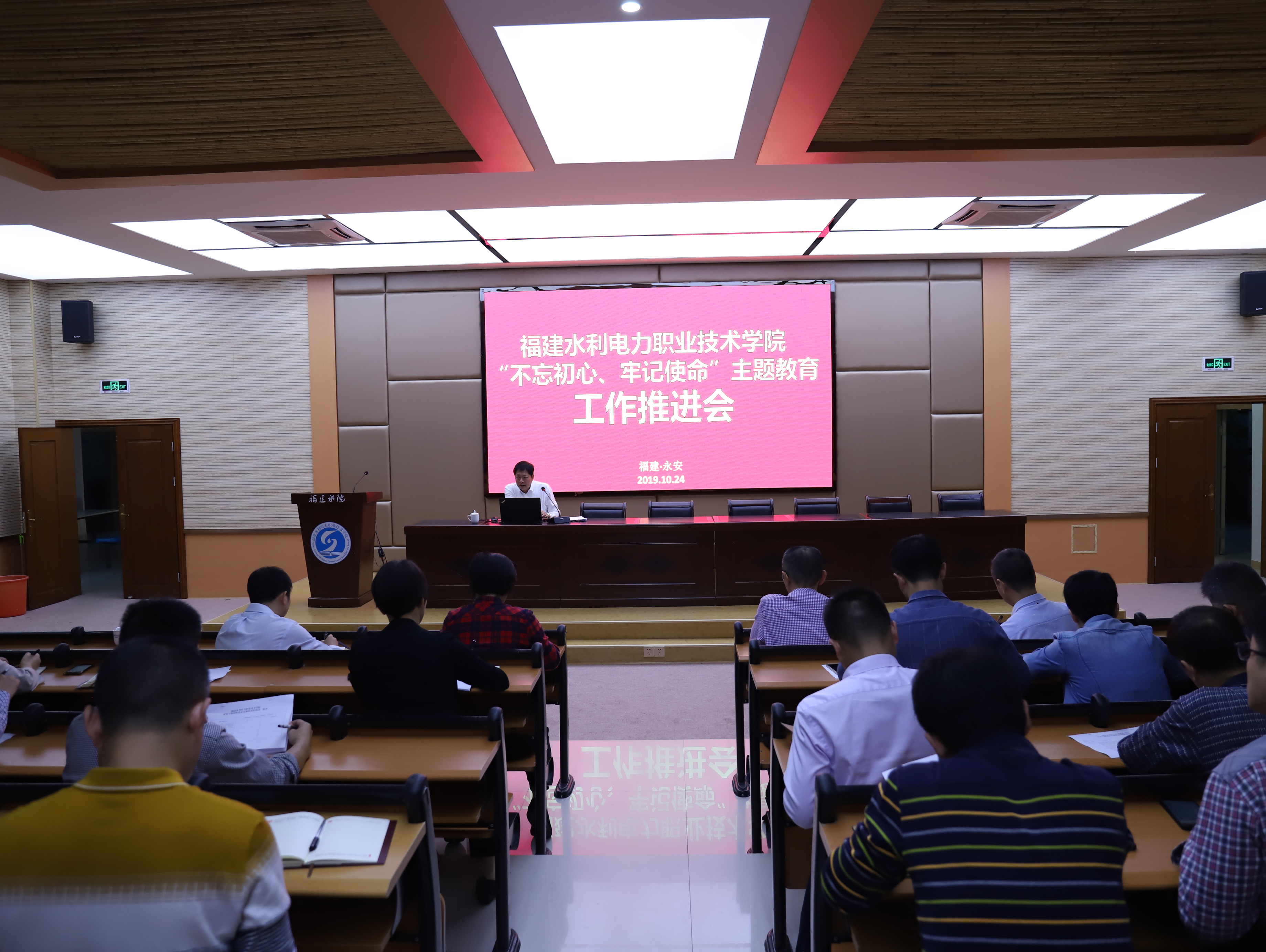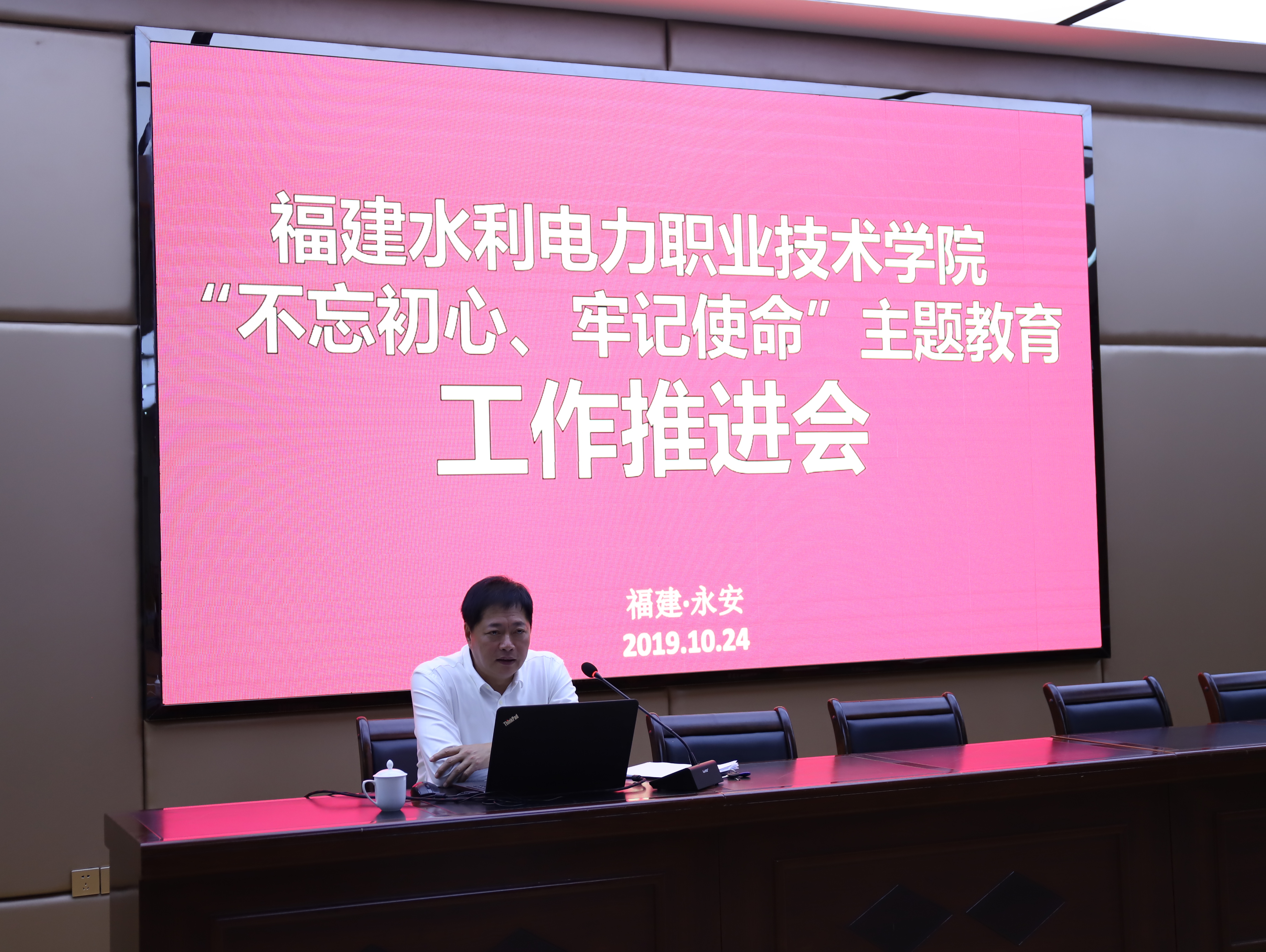 10月24日下午,学院党委召开“不忘初心、牢记使命”主题教育工作推进会。会议由党委书记庄伟廉主持,学院主题教育领导小组成员、领导小组办公室成员、机关副处级以上干部、各党总支书记、支部书记等参加了会议。