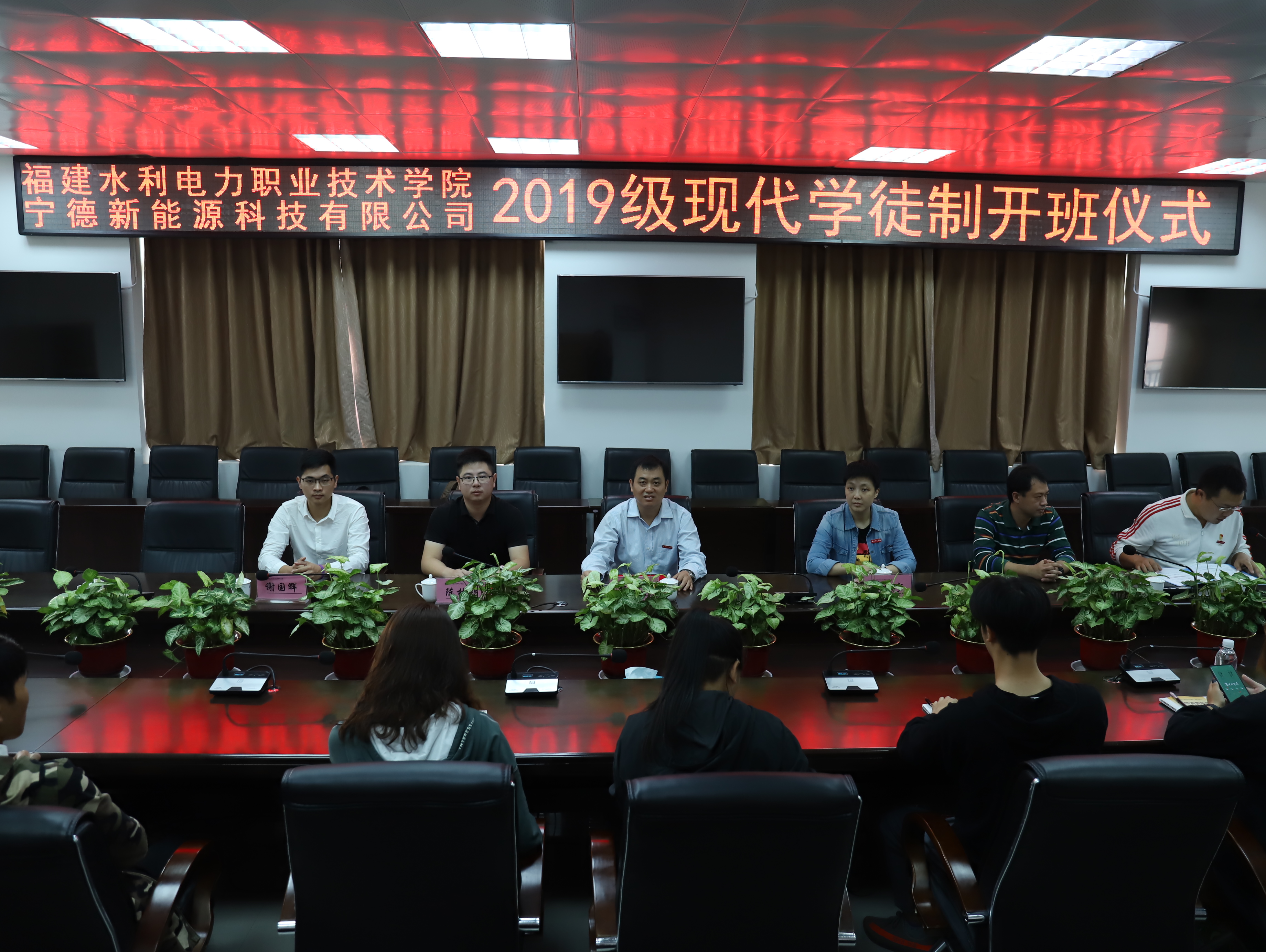 10月25日,机电工程系与宁德新能源科技有限公司(ATL)合作共建“现代学徒制”的2019级ATL机电班开班仪式在禹兴园1-506会议室举行。学院副院长杨武盖,宁德新能源科技有限公司人力资源部资深招聘主管陈林鹏、招聘专员谢国辉,机电工程系党总支书记郭俊宇、机电工程系副主任兰嵩等领导出席开班仪式,校企双方有关部门人员及2019级ATL机电班的38名同学到场参加。开班仪式由该班辅导员郑国鉴主持。