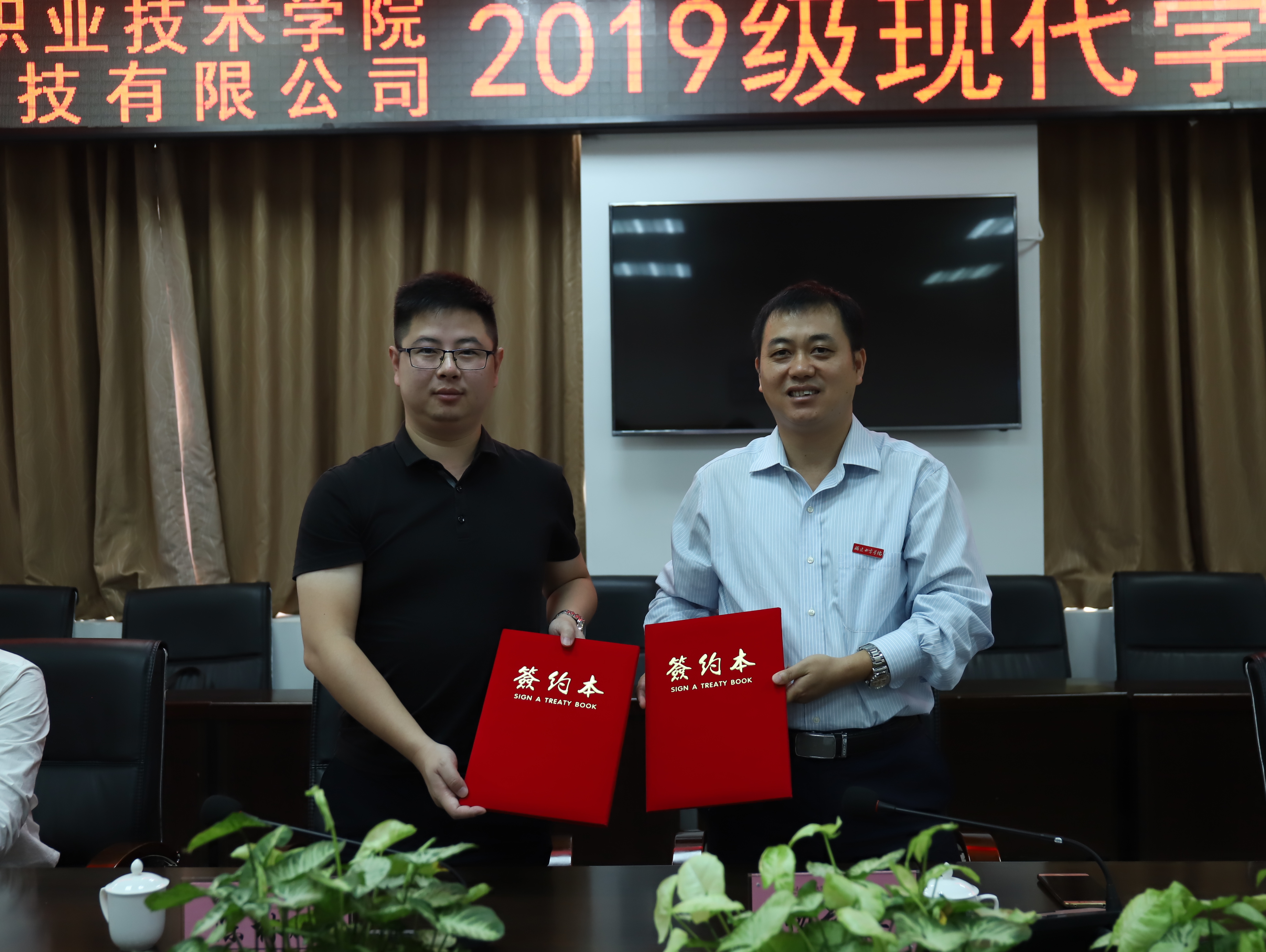 开班仪式后,杨武盖与陈林鹏分别代表校企双方进行了“现代学徒制”校企合作签约仪式。
