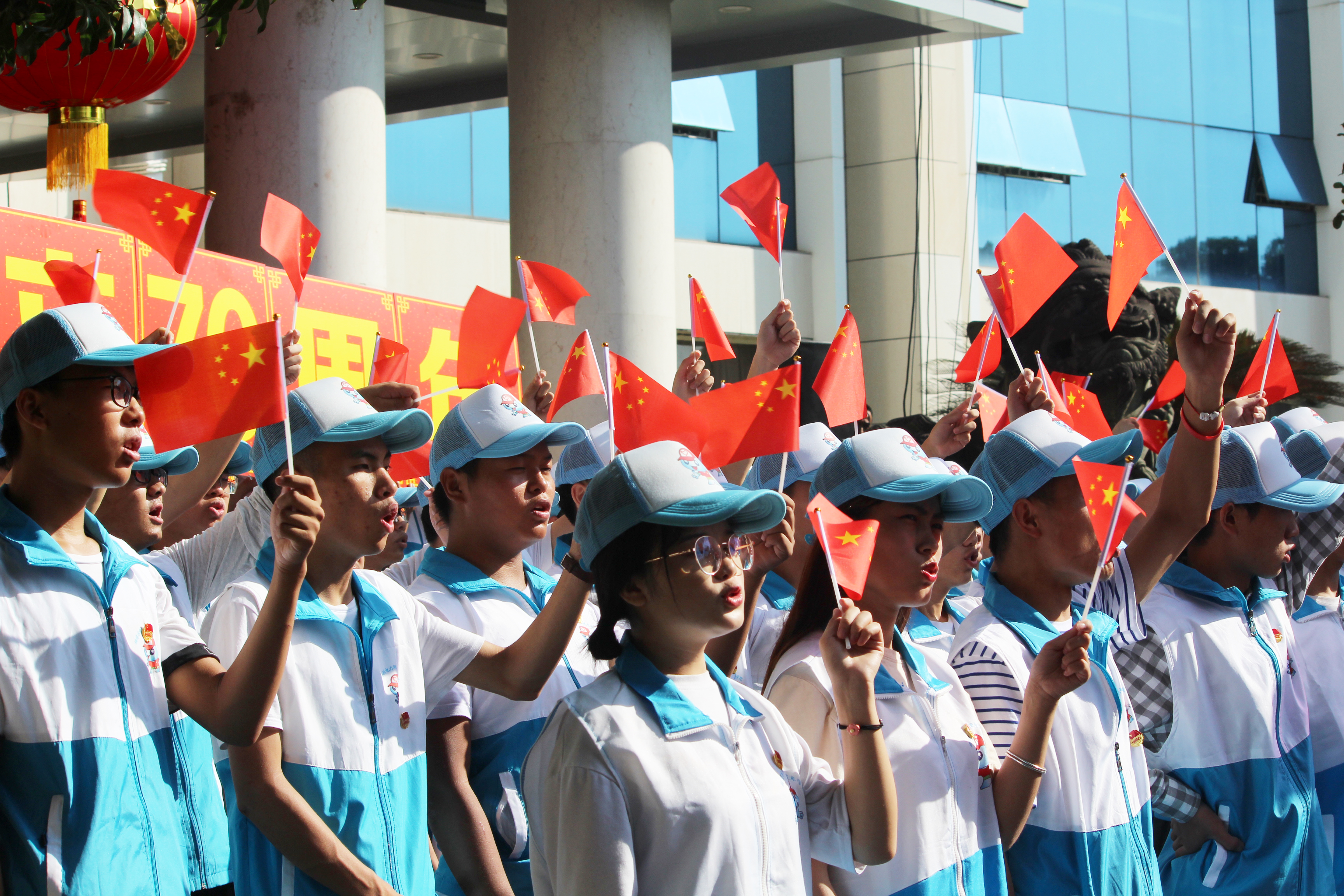 此外,学院还组织了学生代表组成方阵参加了永安市政府举行的国庆升旗仪式。百名水院学子同在场的2000多名地方干部群众一起,在雄壮的军乐声中,观看升旗、高唱《歌唱祖国》《今天是你的生日—中国》等歌曲,用真挚的歌声向伟大的祖国深情告白,向新中国成立70周年献礼。