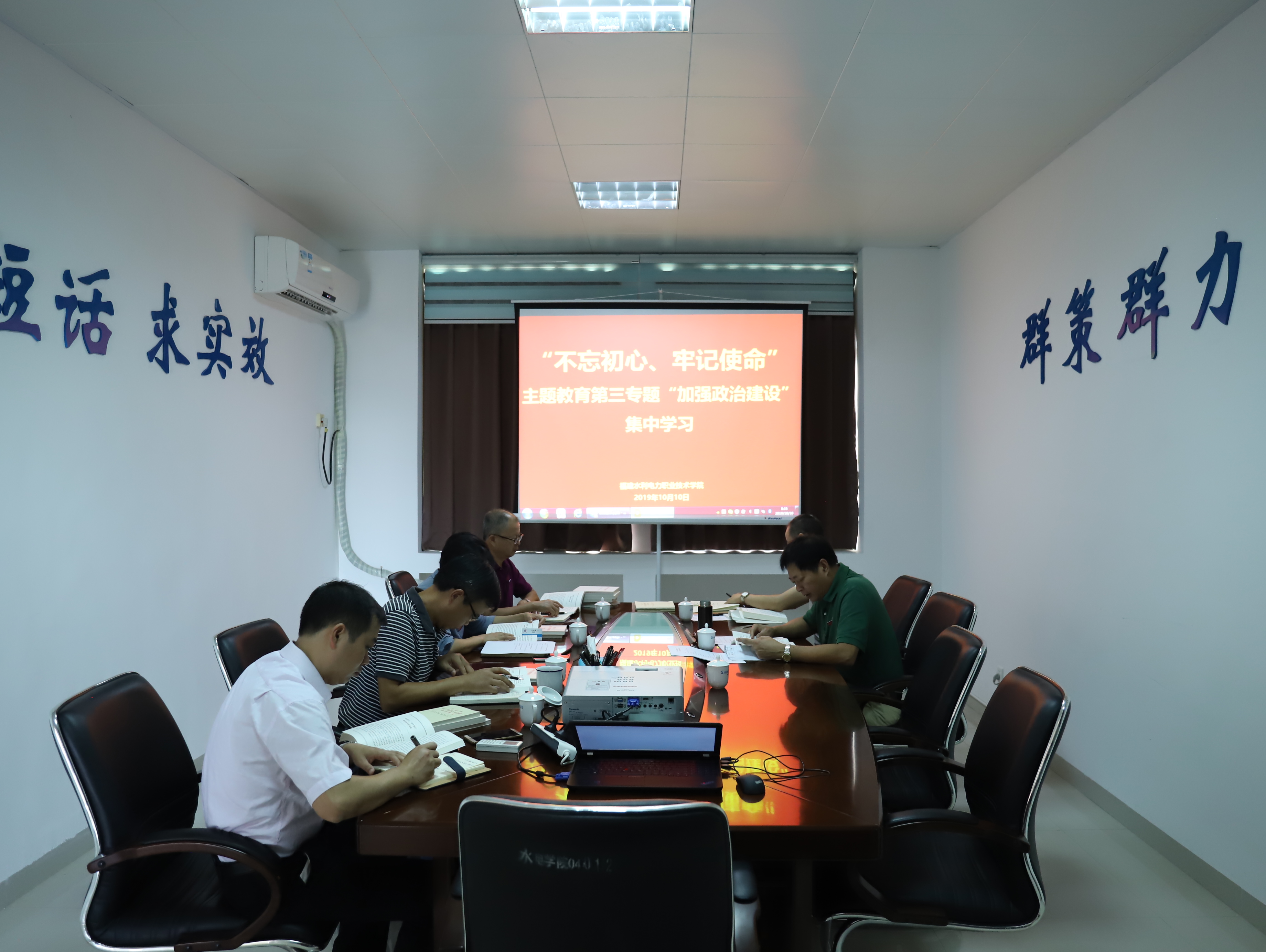 10月10日,学院党委开展“不忘初心、牢记使命”主题教育第三专题“加强政治建设”集中学习和研讨会。在家党政领导班子、全体正科级以上干部共40余人参加了学习研讨。